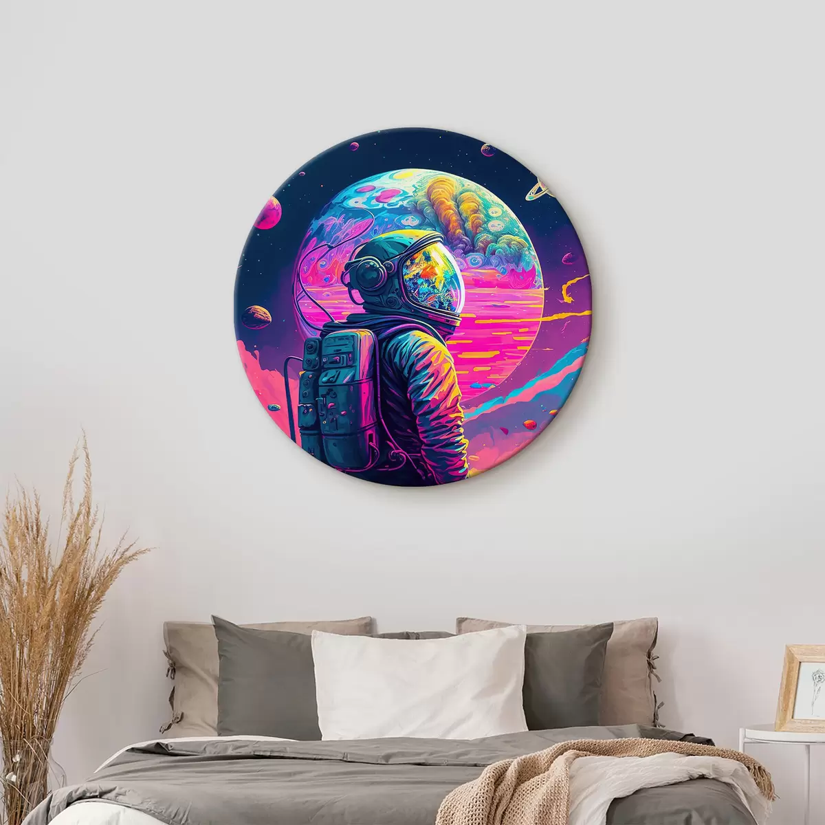 Ronde schilderijen Illustratie van toekomstig landschap met bergen, planeten, maan Nr r33058