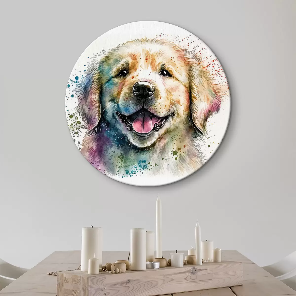 Ronde schilderijen Gelukkige puppy in aquarelstijl Nr r33539