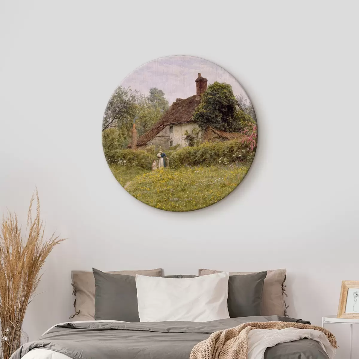 Ronde schilderijen Old Cottages in Pinner door kunstenaar Helen Allingham r33775