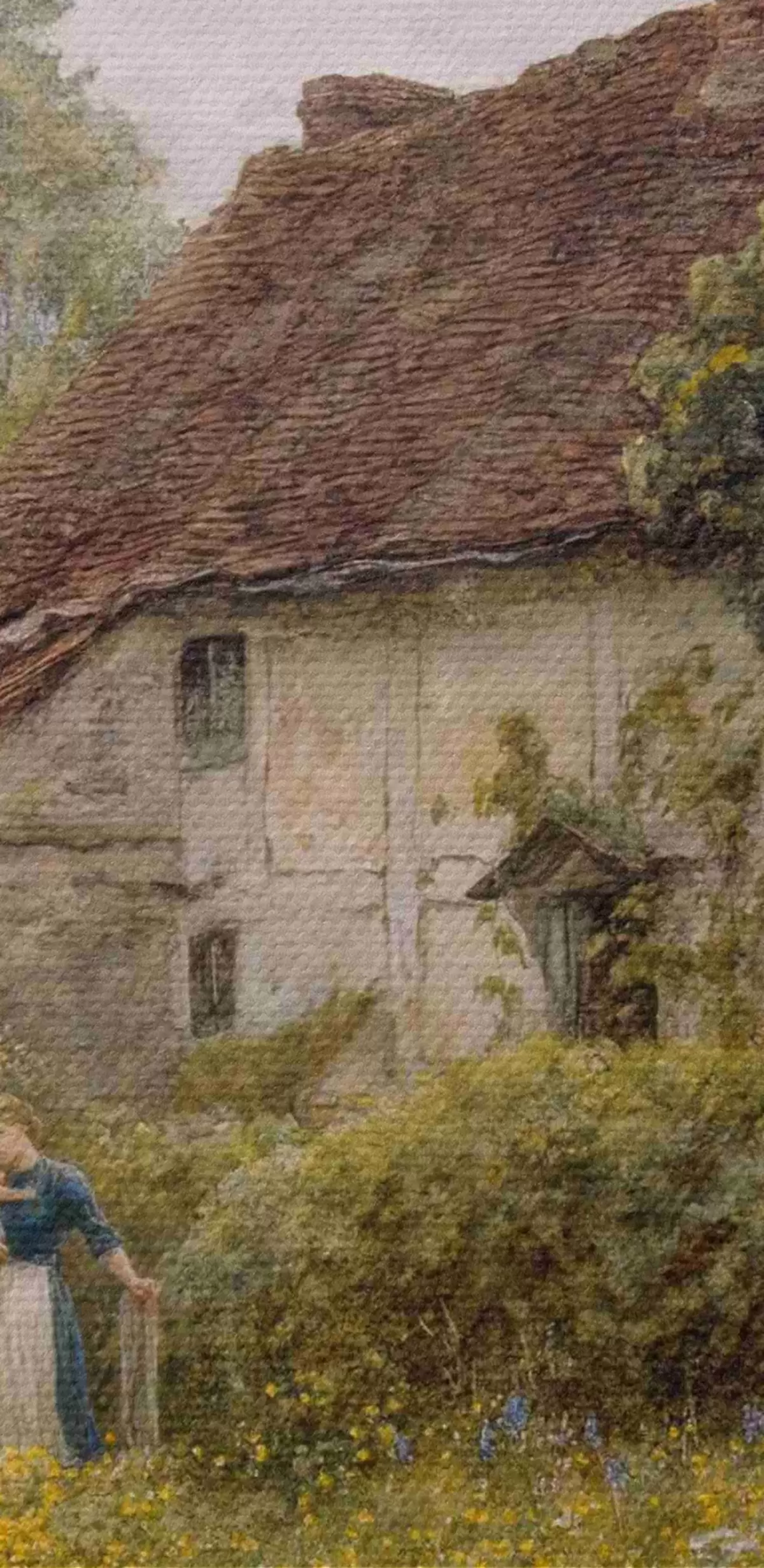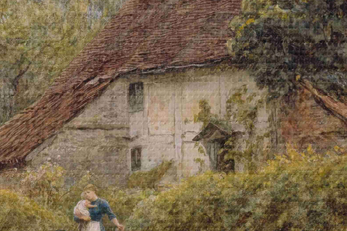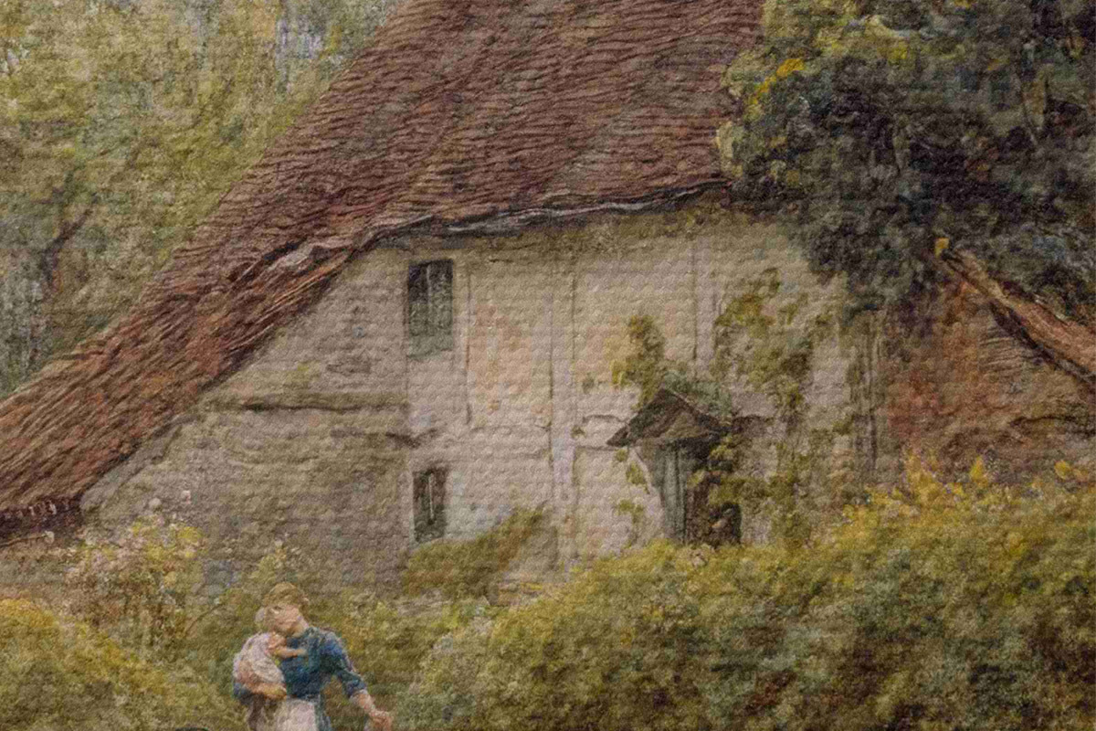 Ronde schilderijen Old Cottages in Pinner door kunstenaar Helen Allingham Nr r33775