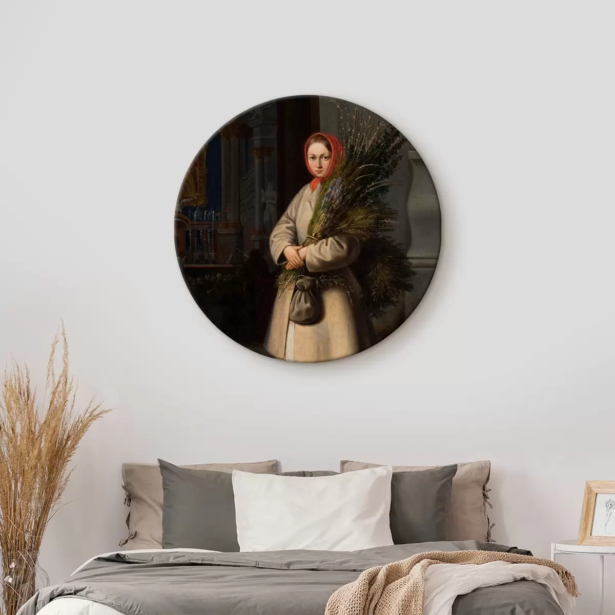 Ronde schilderijen Litouwer met Palmzondagbladeren, kunstenaar Kanutas Ruseckas Nr r33792