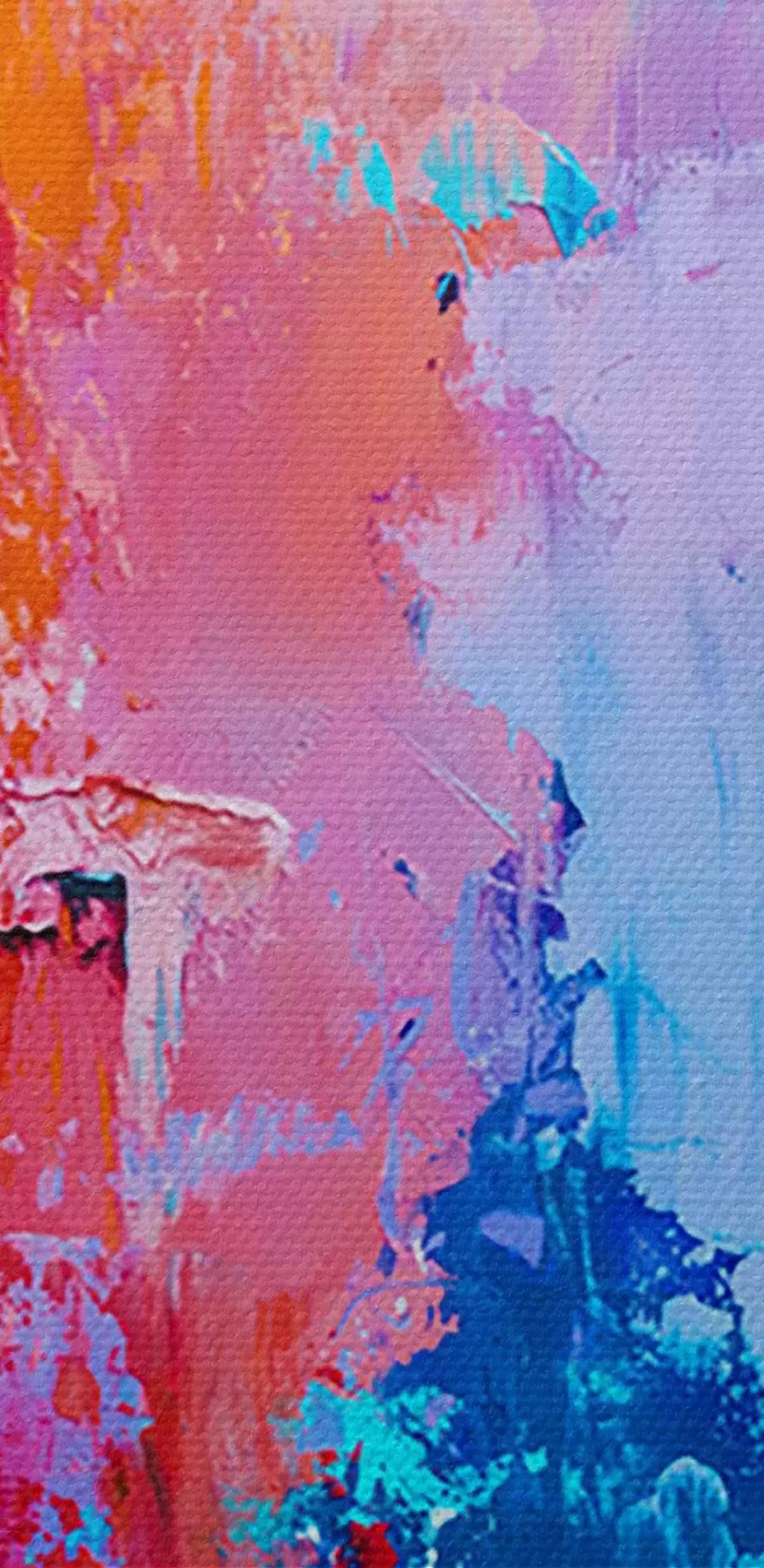 Het schilderij kan direct na ontvangst worden opgehangen. Het schilderij wordt opgespannen op een 2 cm breed houten spieraam.