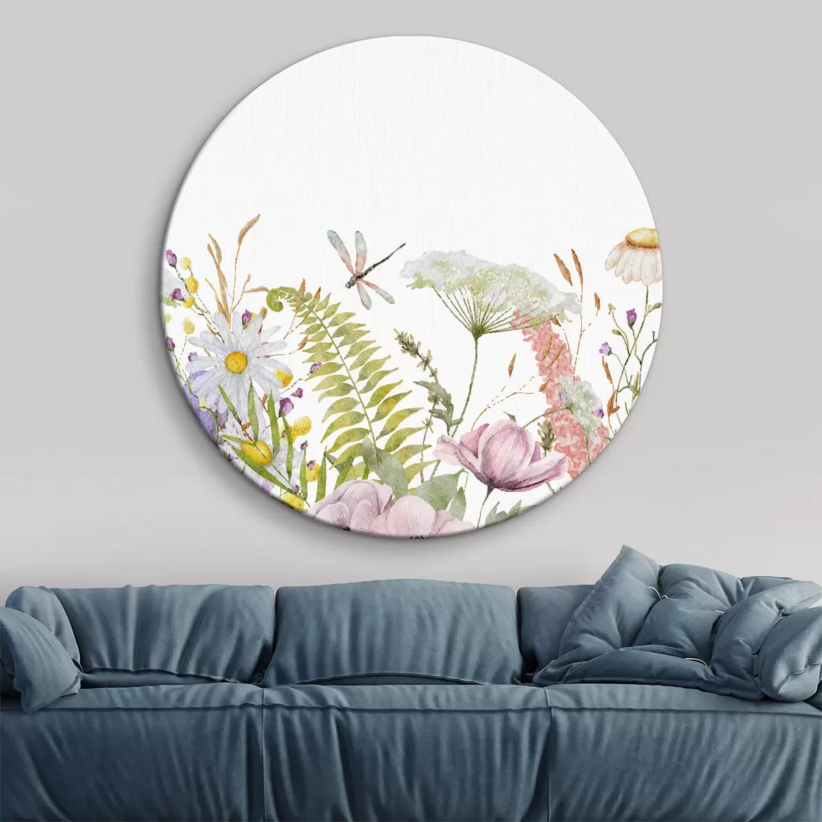 Ronde schilderijen delicate bloemen r34153