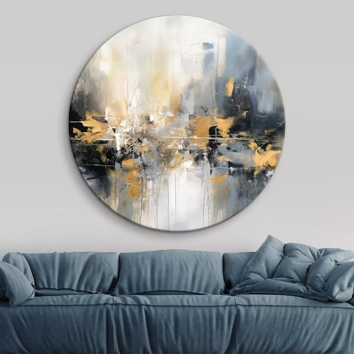 Ronde schilderijen Abstract schilderij in blauwe en witte tinten Nr r34183
