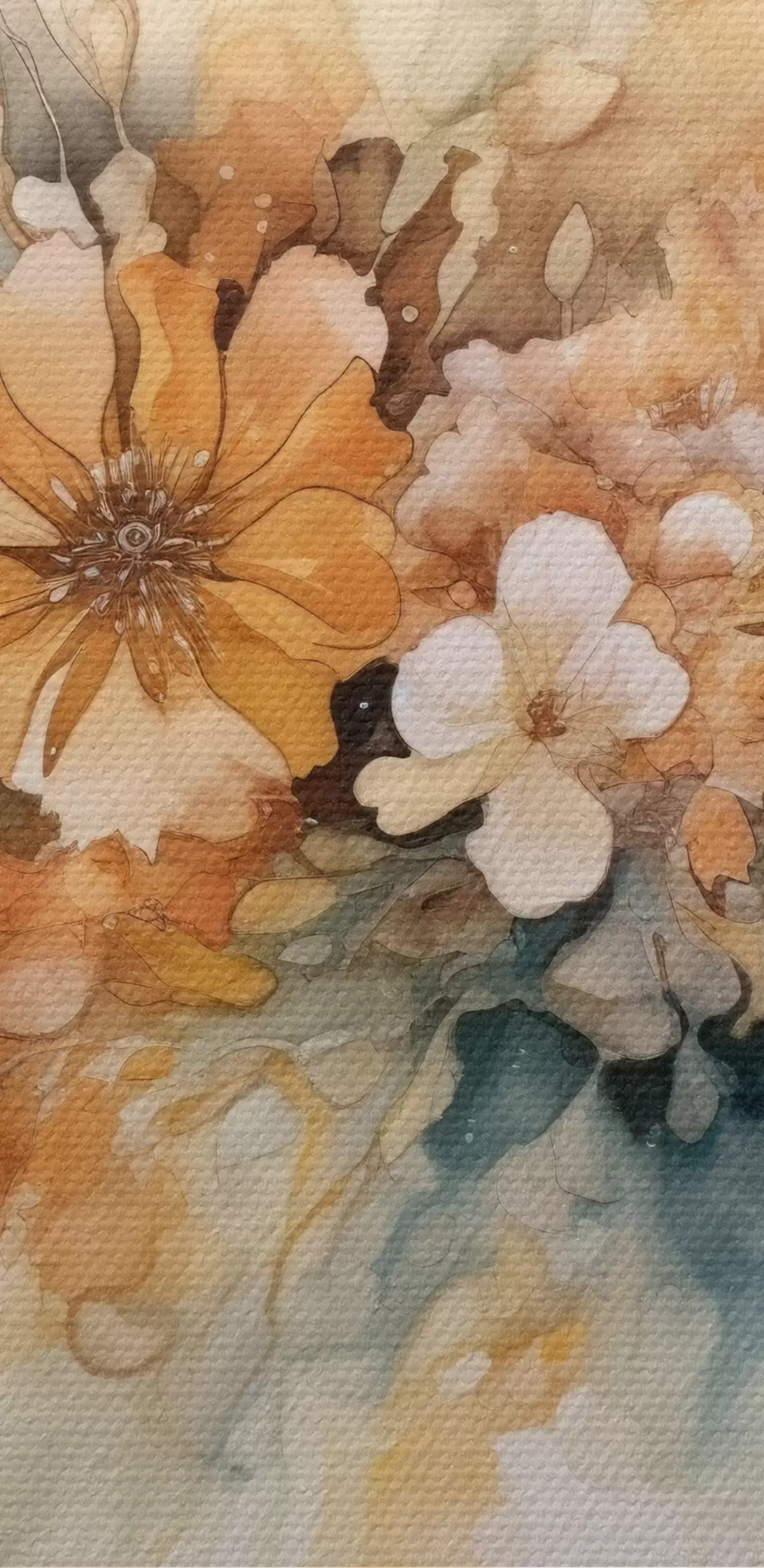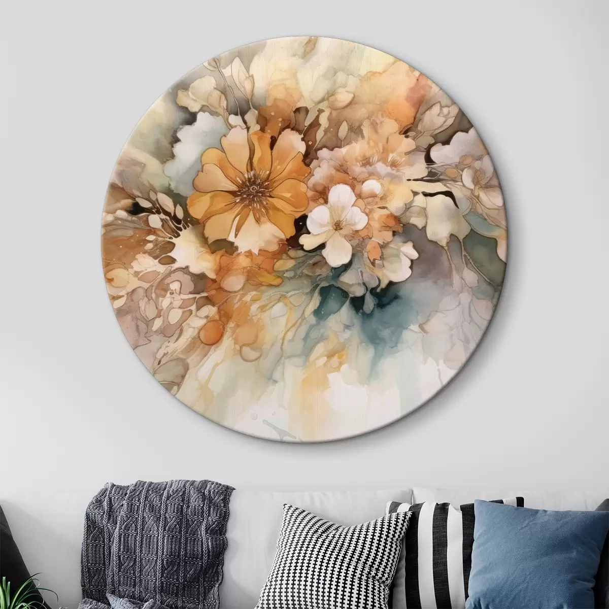 Ronde schilderijen Oranje aquarel bloemen Nr r34202