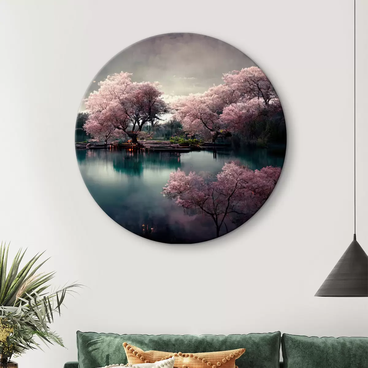 Ronde schilderijen Water, wolk en bloem Nr r34388