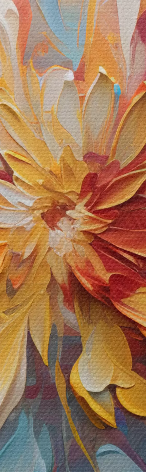 Het schilderij kan direct na ontvangst worden opgehangen. Het schilderij wordt opgespannen op een 2 cm breed houten spieraam.