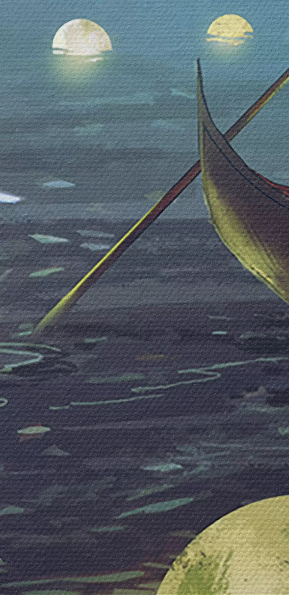 Ronde schilderijen Een man in een boot tegen de achtergrond van de schijnende maan Nr r34544