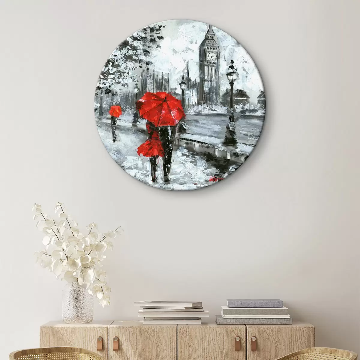 Ronde schilderijen Raam, plant en paraplu Nr r34614