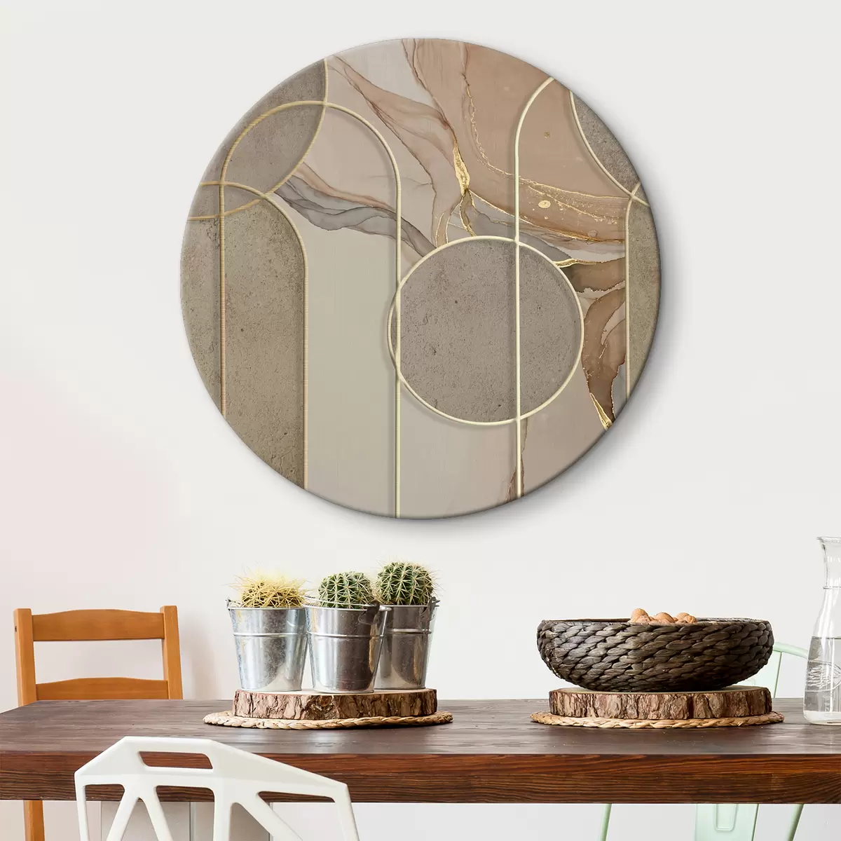 Ronde schilderijen Beige marmer in boho-stijl Nr r34773