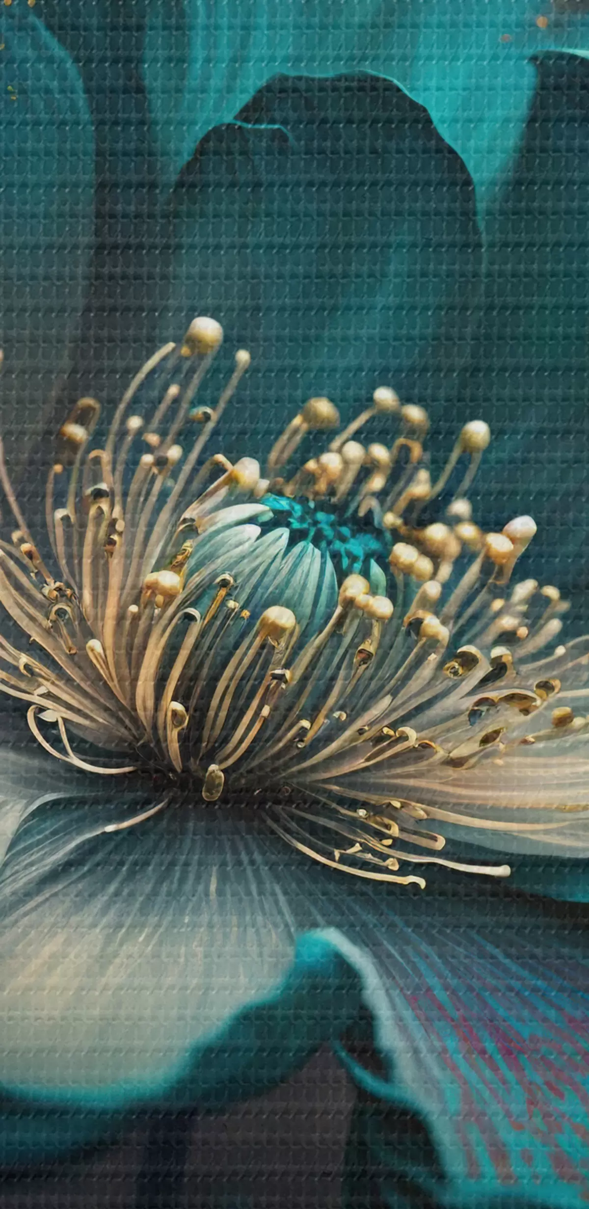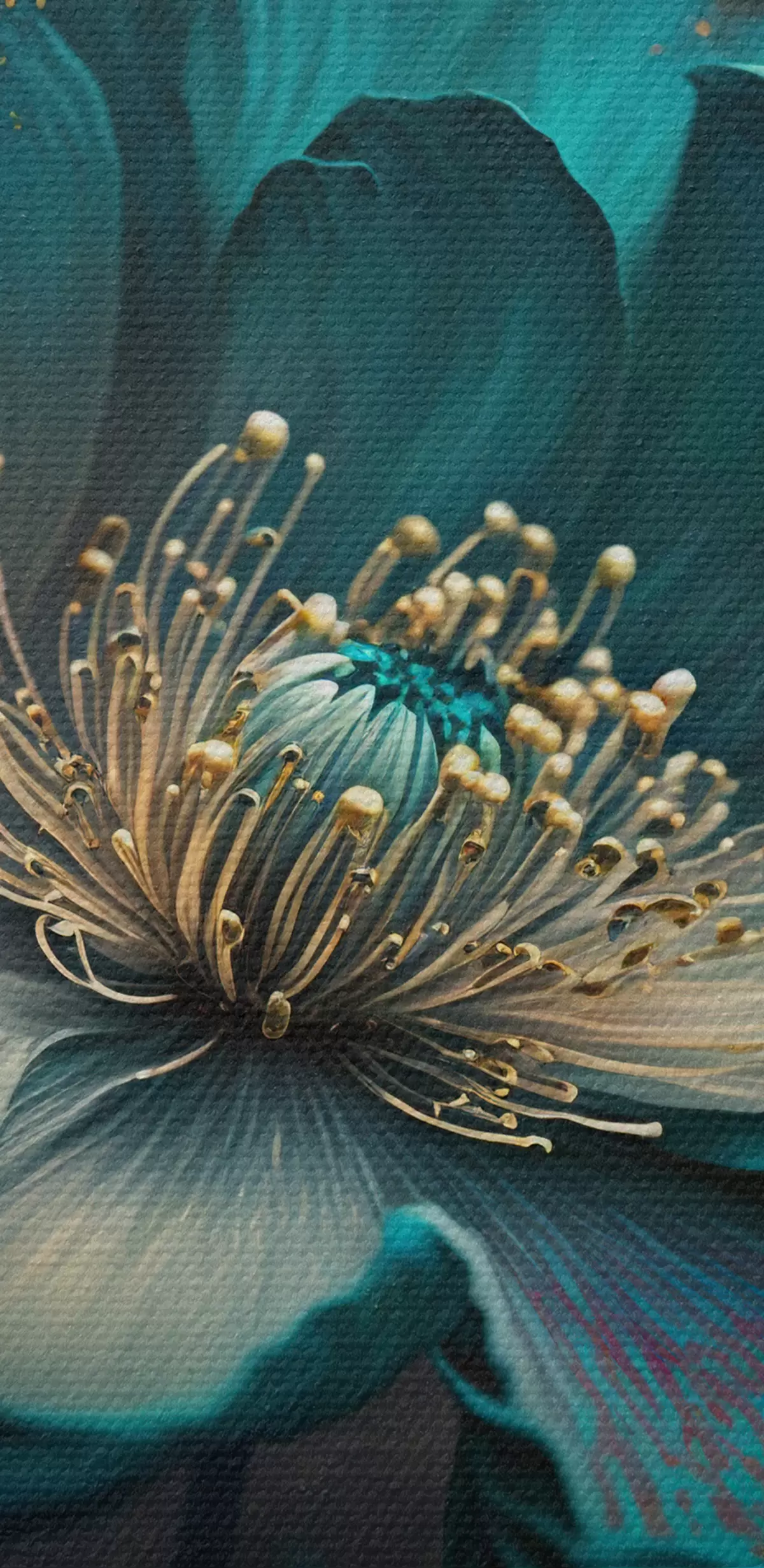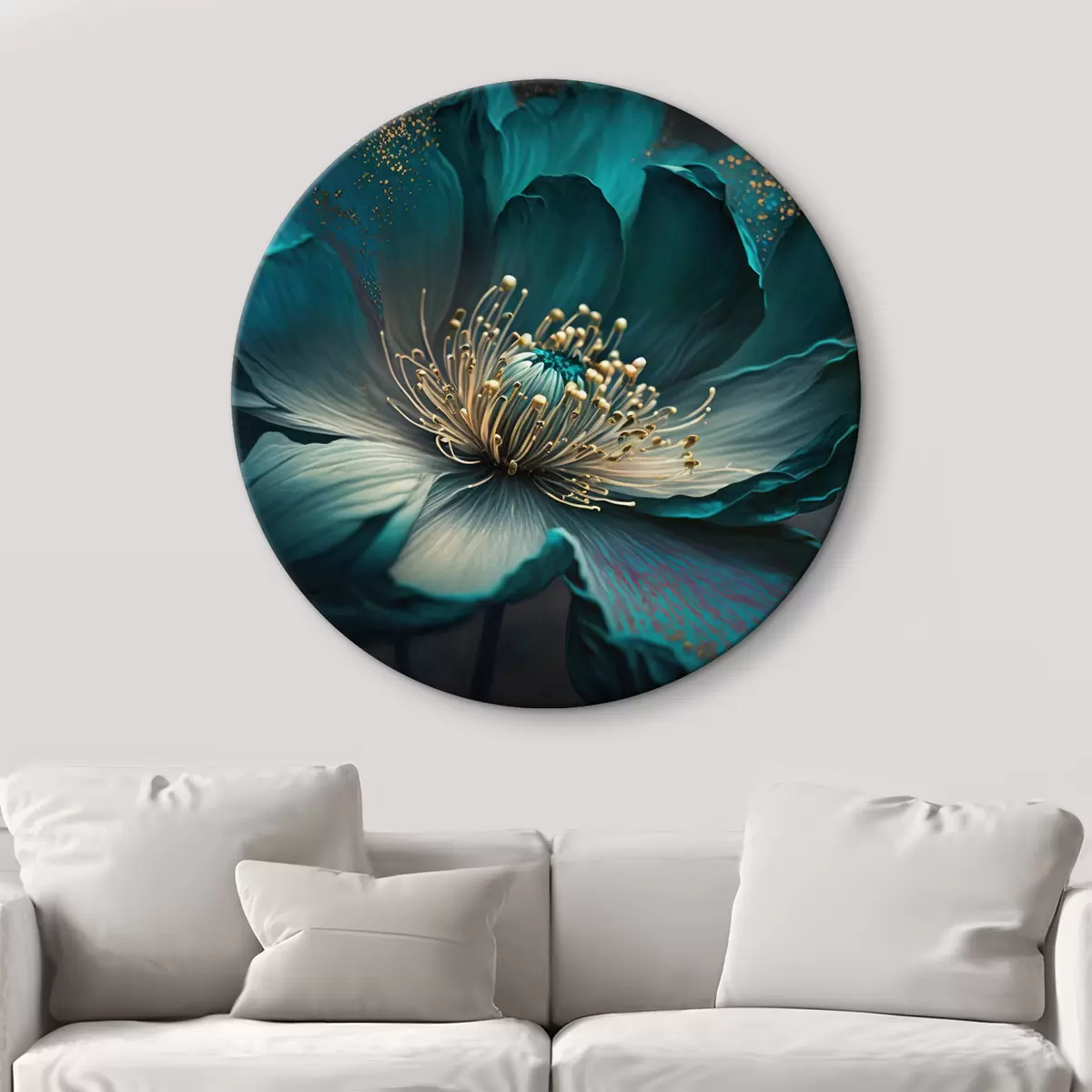 Ronde schilderijen Turquoise bloem close-up foto r34854