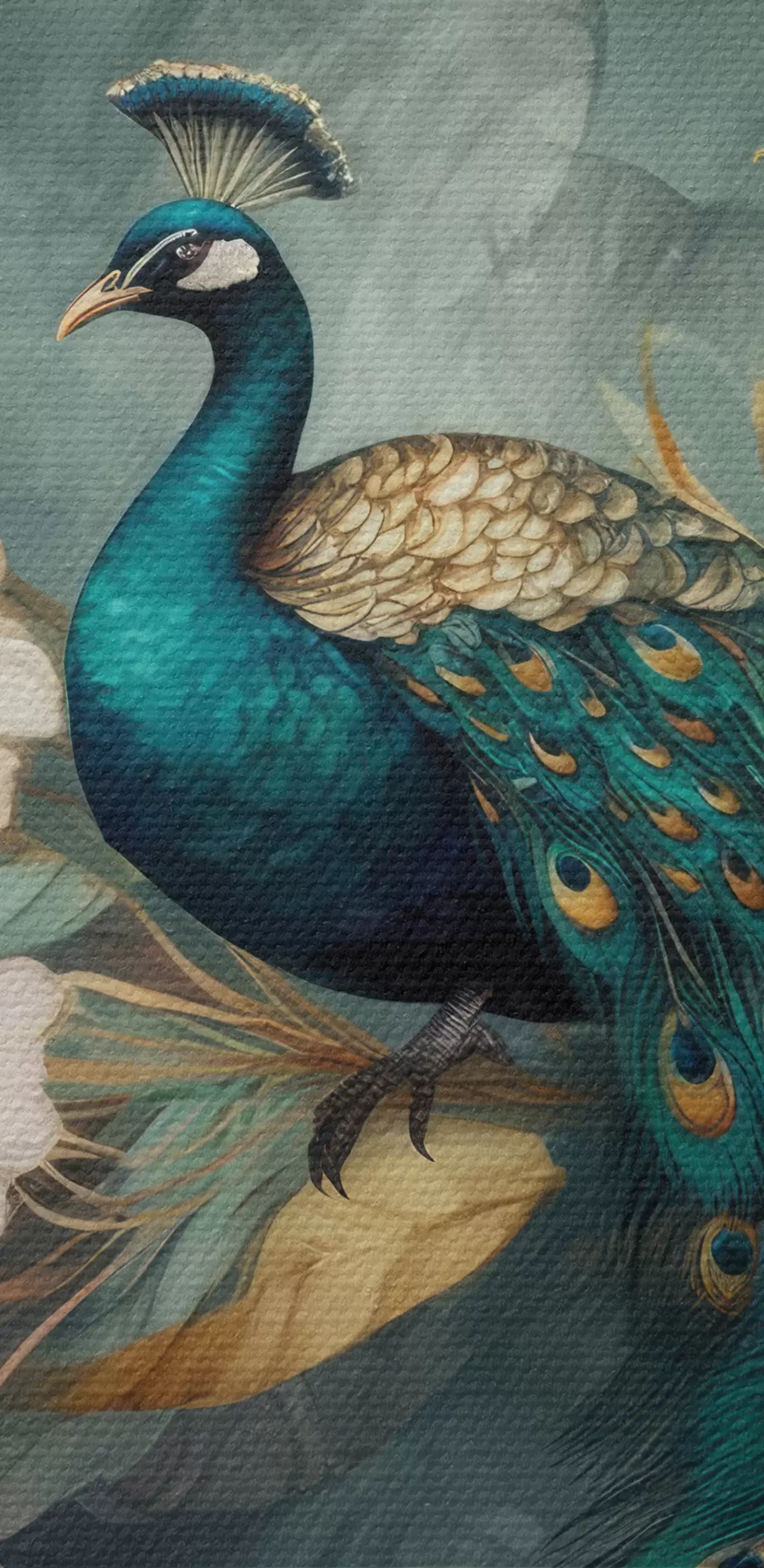 Ronde schilderijen Een prachtige pauw op een bloeiende tak Nr r34866