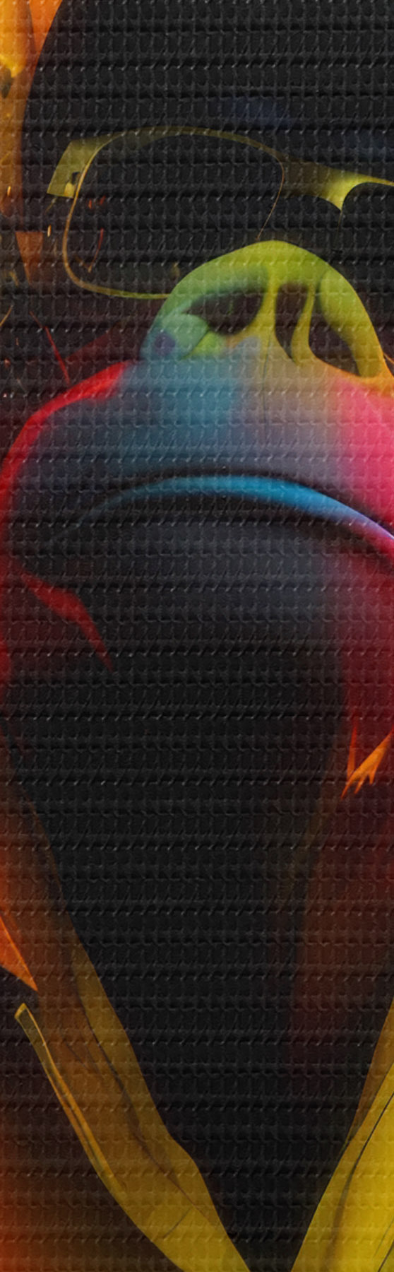 Om het doek op te spannen op spielatten zonder de afbeelding te beschadigen, gebruiken we gespiegeld beeld.