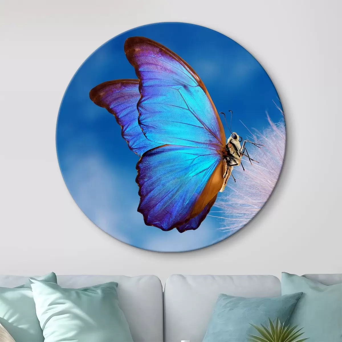 Ronde schilderijen Vlinder op een paardenbloem Nr r34923