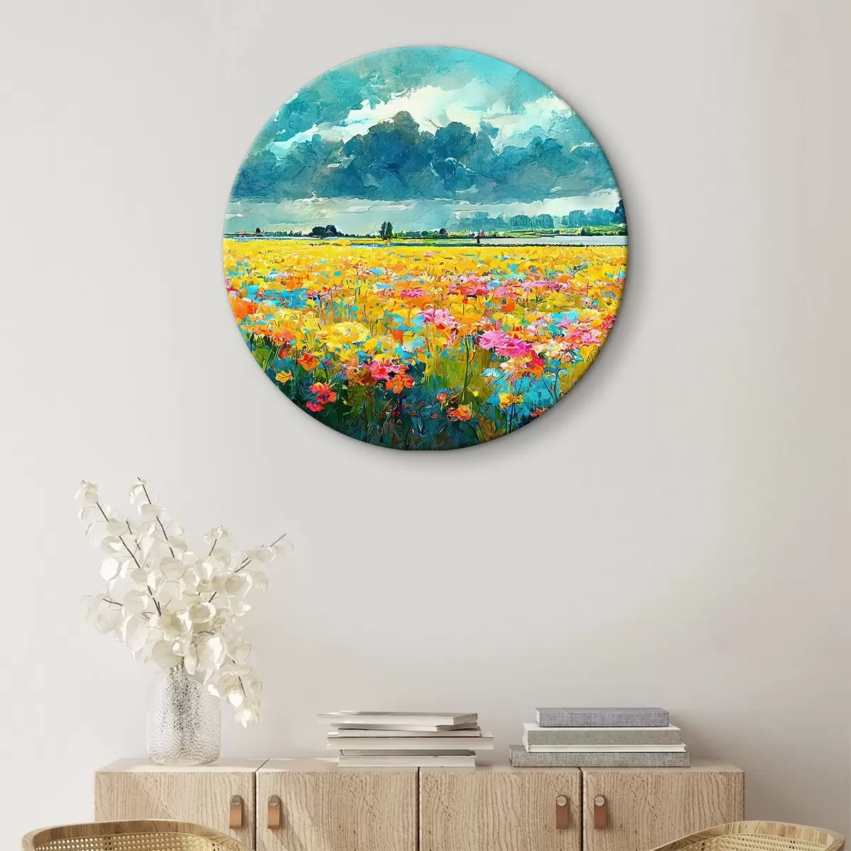 Ronde schilderijen Wilde bloemen tegen de achtergrond van bergen Nr r34944