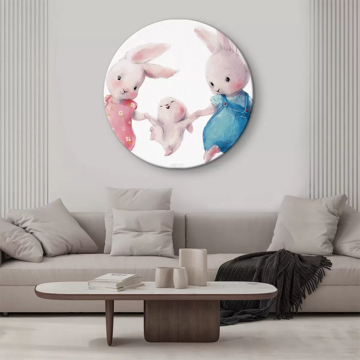 Ronde schilderijen Een vrolijke konijnenfamilie Nr r34997