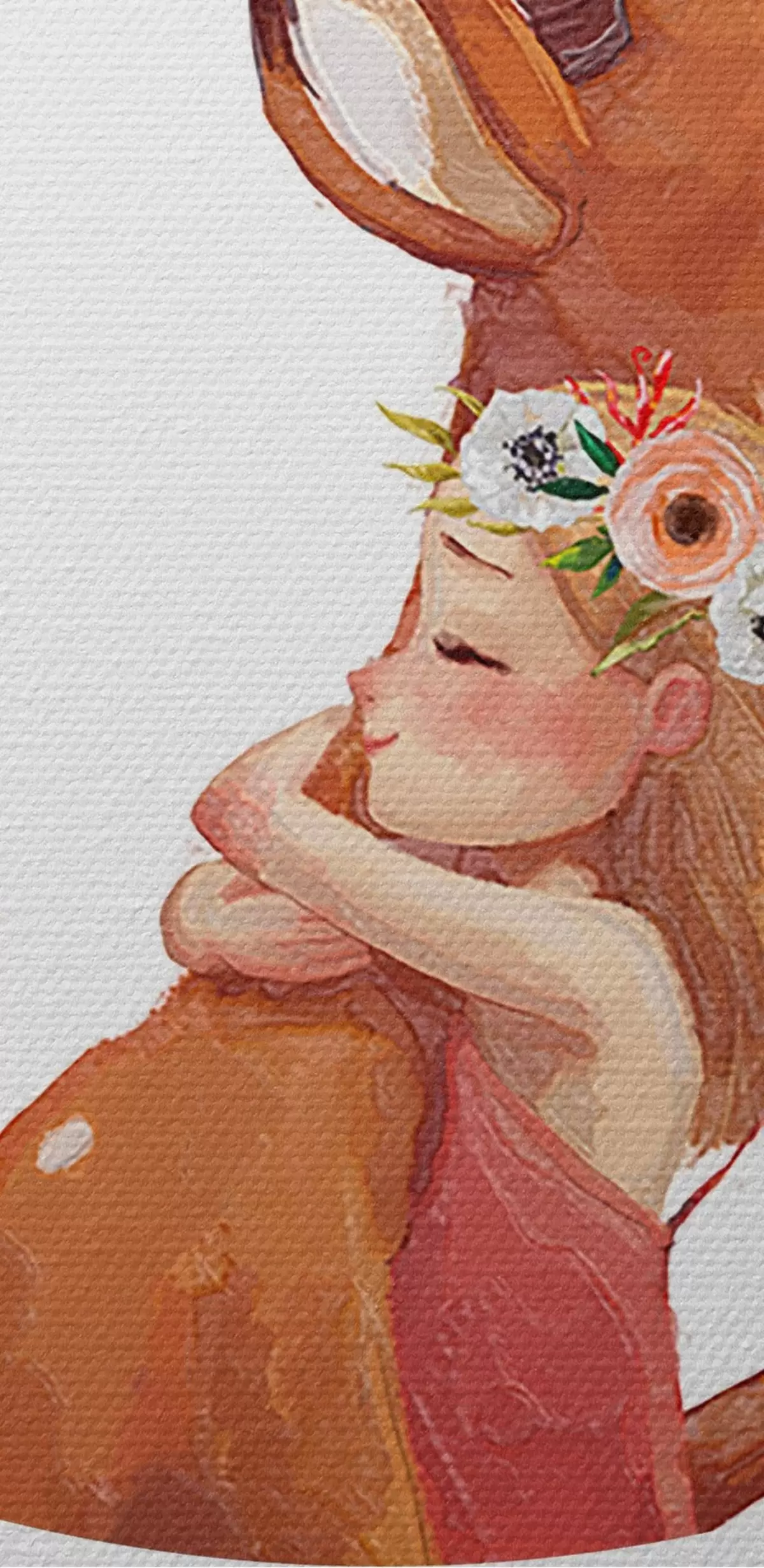 Ronde schilderijen Hertenfee en meisje Nr r34998