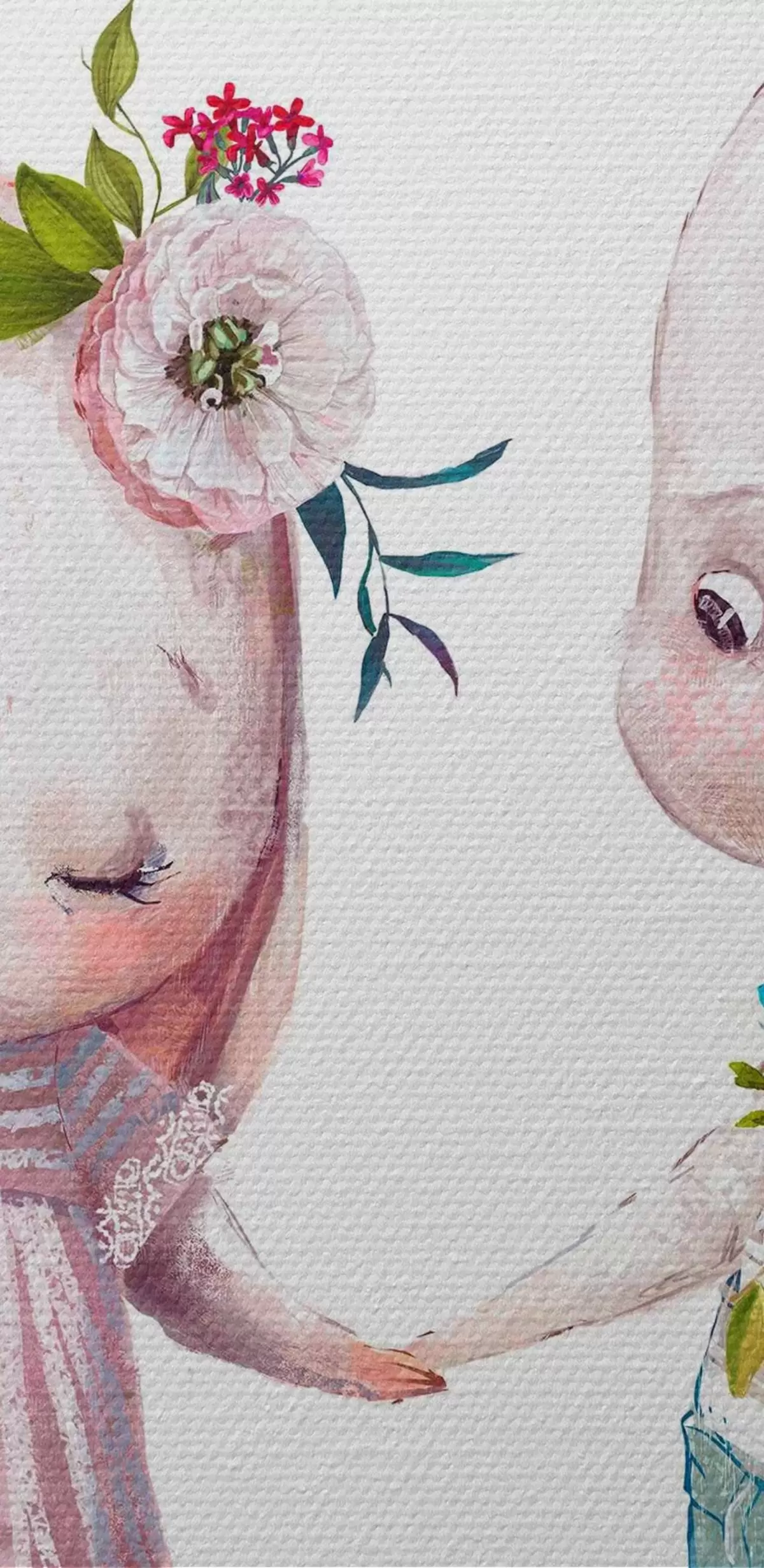 Ronde schilderijen Een paar Date konijntjes en bloemen r35055