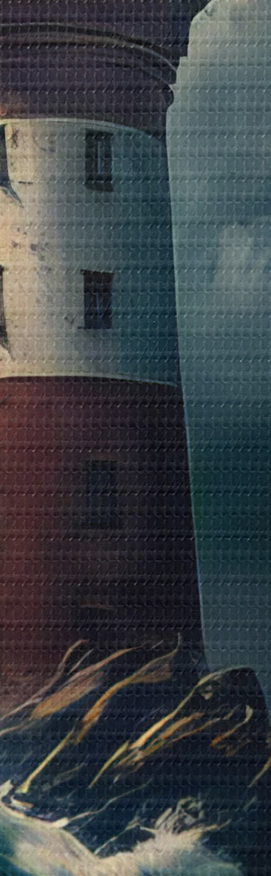Ronde schilderijen Pittoreske vuurtoren op een eenzaam eiland tijdens een storm Nr r35349