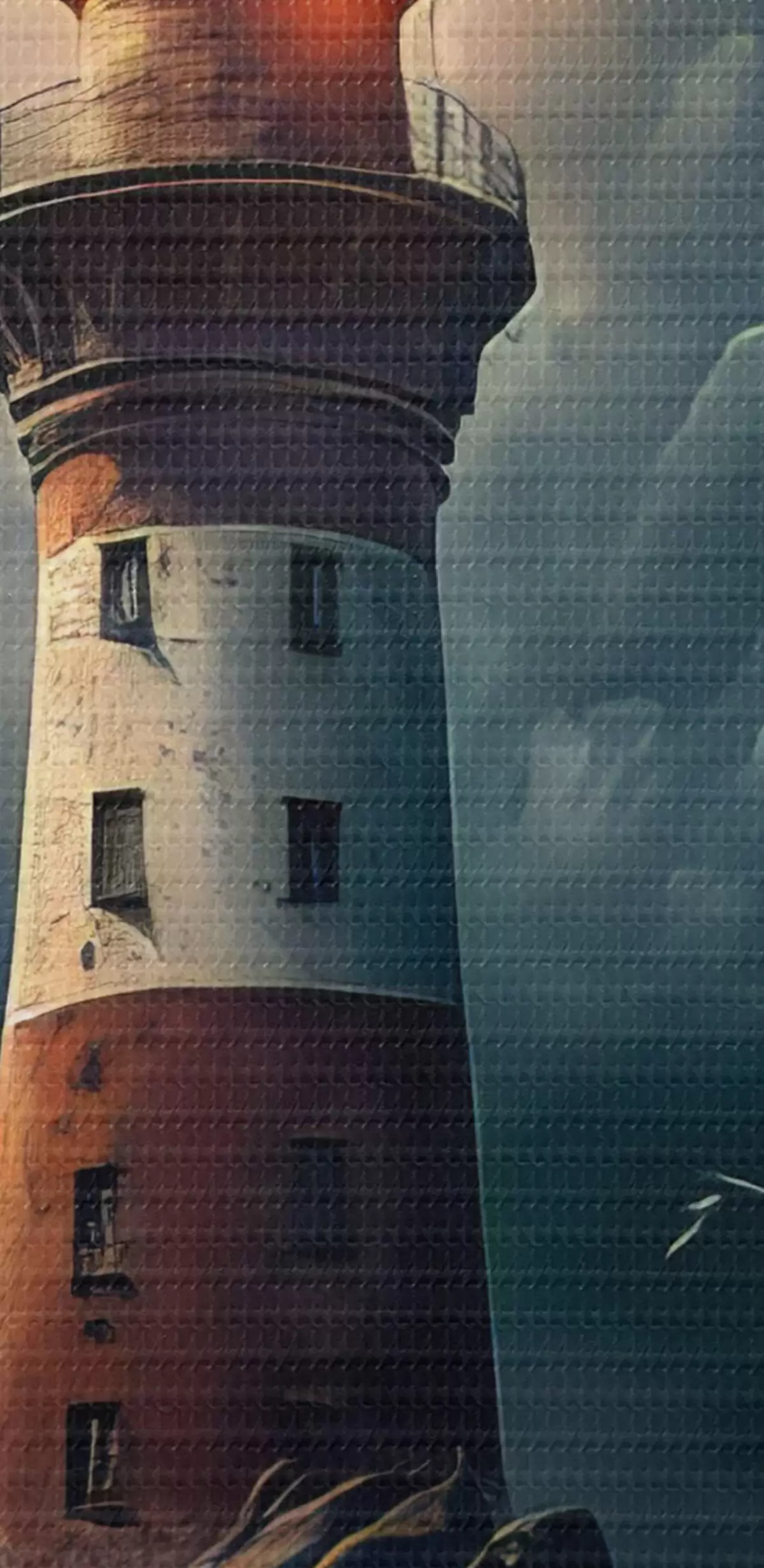 Ronde schilderijen Pittoreske vuurtoren op een eenzaam eiland tijdens een storm Nr r35349