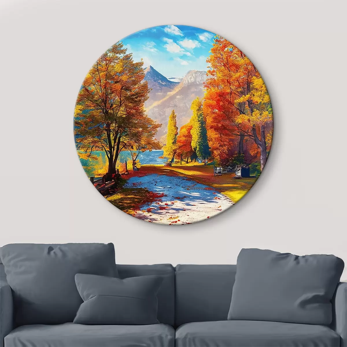 Ronde schilderijen handgetekend herfstbos Nr r35375