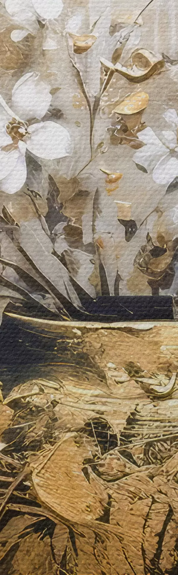 Er zijn drie soorten materiaal te bestellen: Economic Canvas - een dicht en duurzaam materiaal voor digitaal printen, identiek aan schildersdoek, waterdicht oppervlak, realistische weergave van details, materiaal met gemiddelde korrel. Premium Canvas - de textuur lijkt op die van schildersdoek (verweven kleine draden). Zachte, gedetailleerde reproductie van de afbeelding op een mat oppervlak. Eco-Premium - hoogwaardige 100% katoenen stof. Dankzij de natuurlijke katoenvezels is het materiaal duurzaam en slijtvast. Uitstekende kleurweergave en detail.