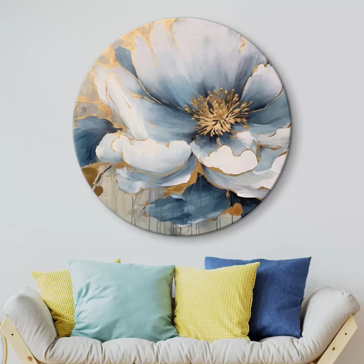 Ronde schilderijen Grote delicate blauwe bloem Nr r35382