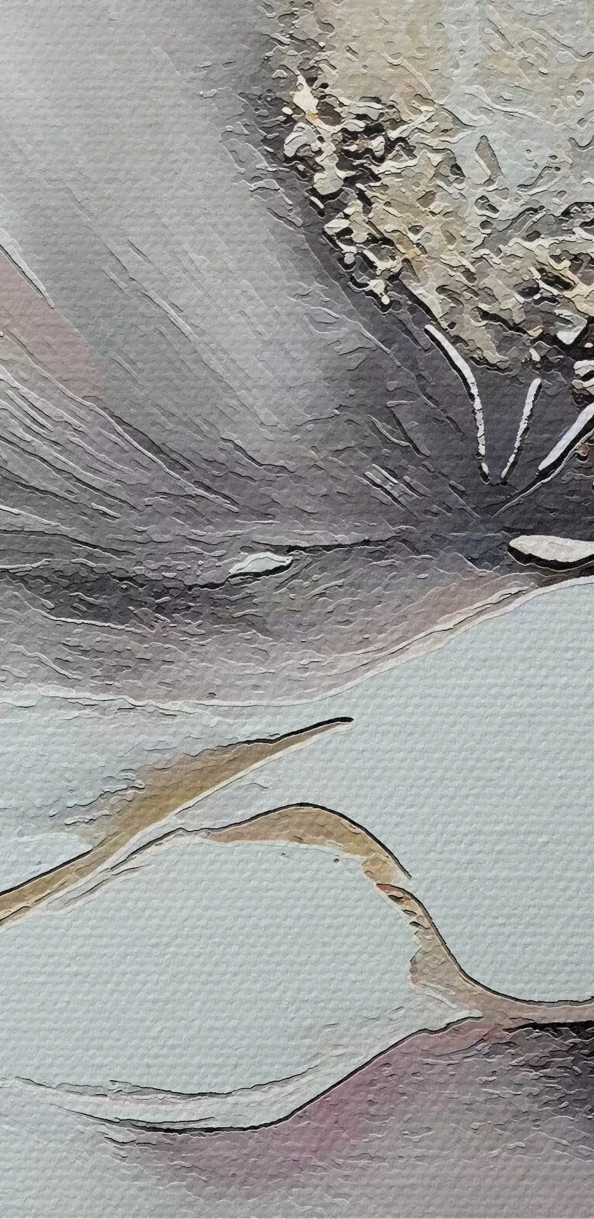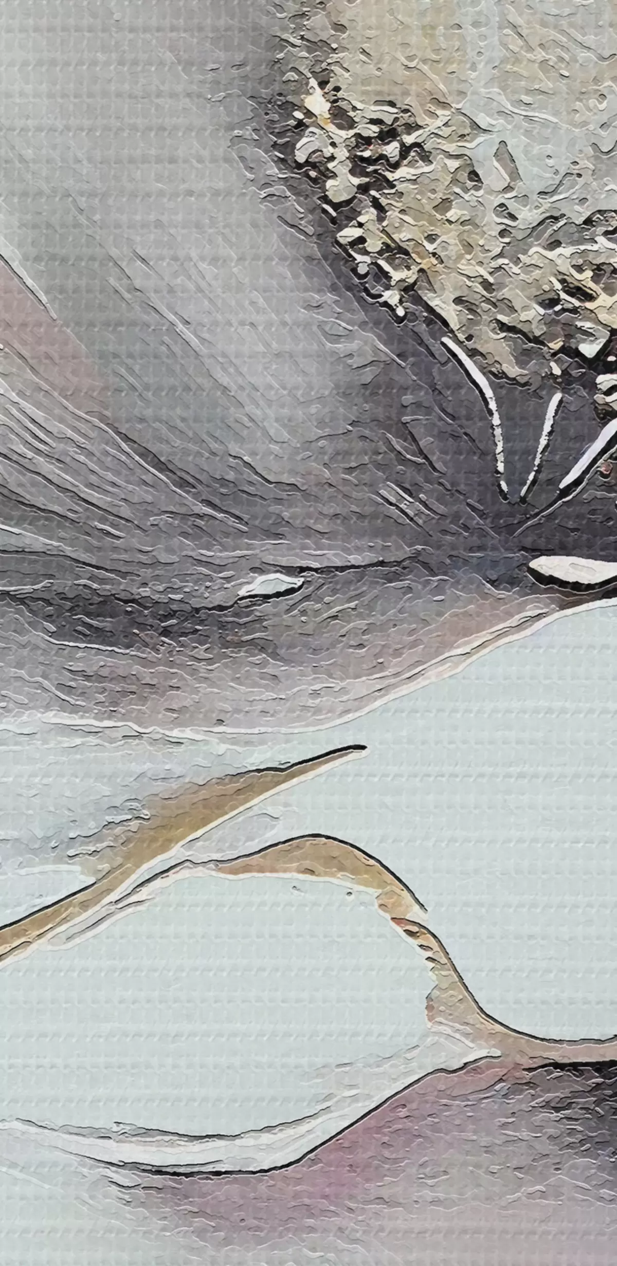 Het schilderij kan direct na ontvangst worden opgehangen. Het schilderij wordt opgespannen op een 2 cm breed houten spieraam.