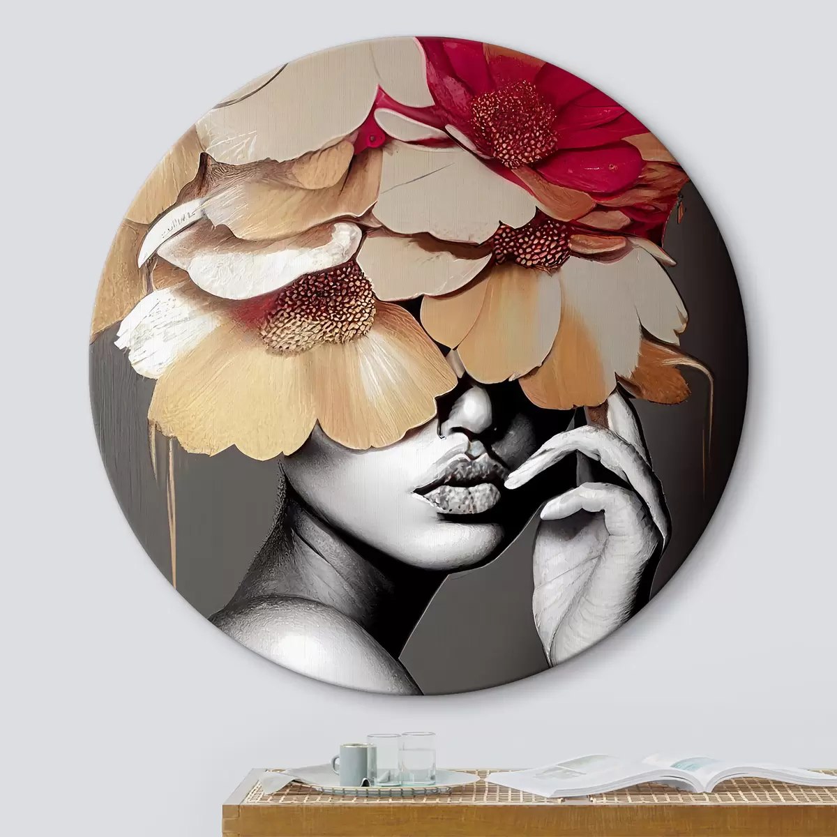 Ronde schilderijen Bloem, plant en wit r35442