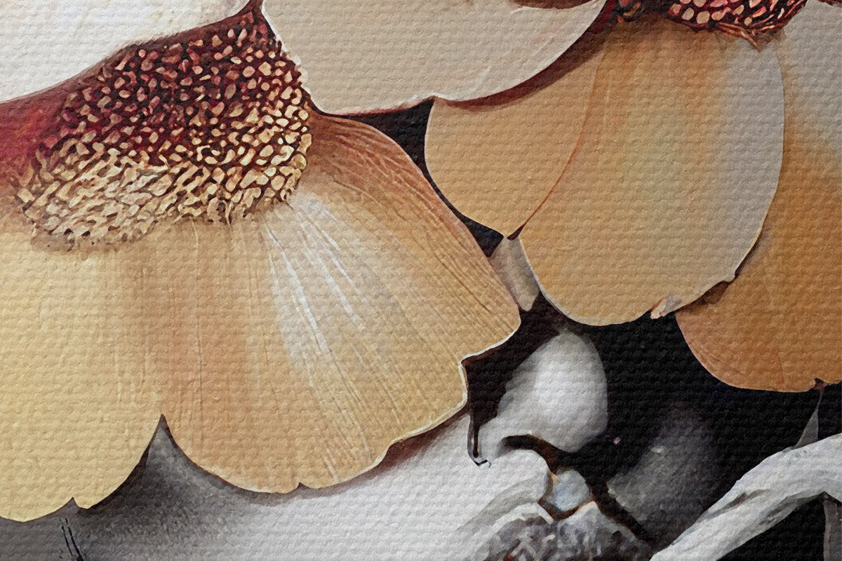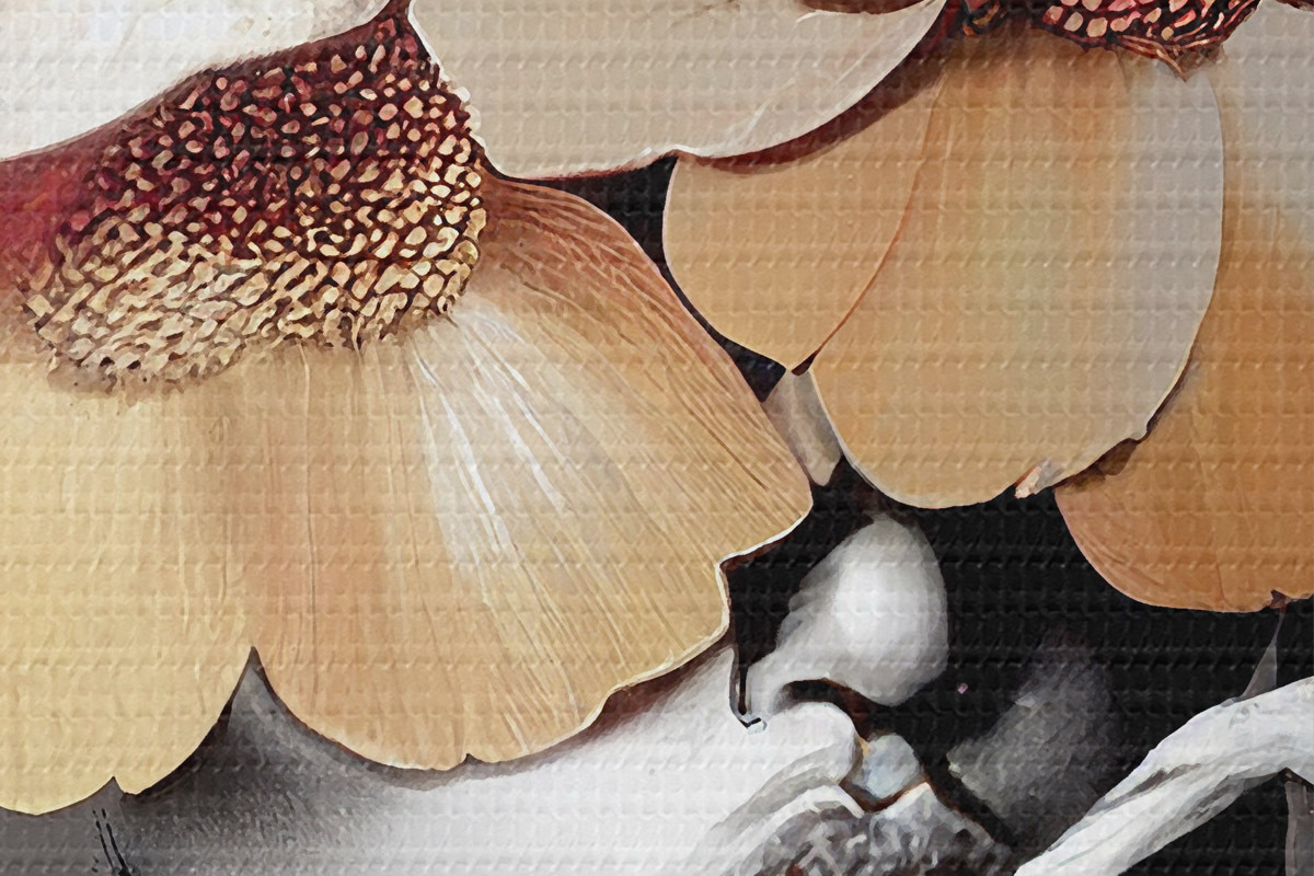 Er zijn drie soorten materiaal te bestellen: Economic Canvas - een dicht en duurzaam materiaal voor digitaal printen, identiek aan schildersdoek, waterdicht oppervlak, realistische weergave van details, materiaal met gemiddelde korrel. Premium Canvas - de textuur lijkt op die van schildersdoek (verweven kleine draden). Zachte, gedetailleerde reproductie van de afbeelding op een mat oppervlak. Eco-Premium - hoogwaardige 100% katoenen stof. Dankzij de natuurlijke katoenvezels is het materiaal duurzaam en slijtvast. Uitstekende kleurweergave en detail.