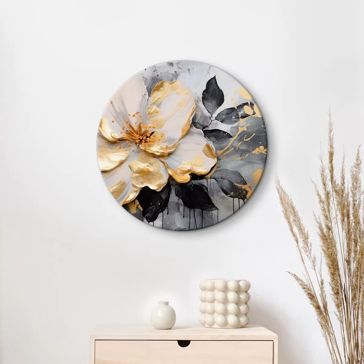Ronde schilderijen Grote witte fantasiebloem Nr r35528