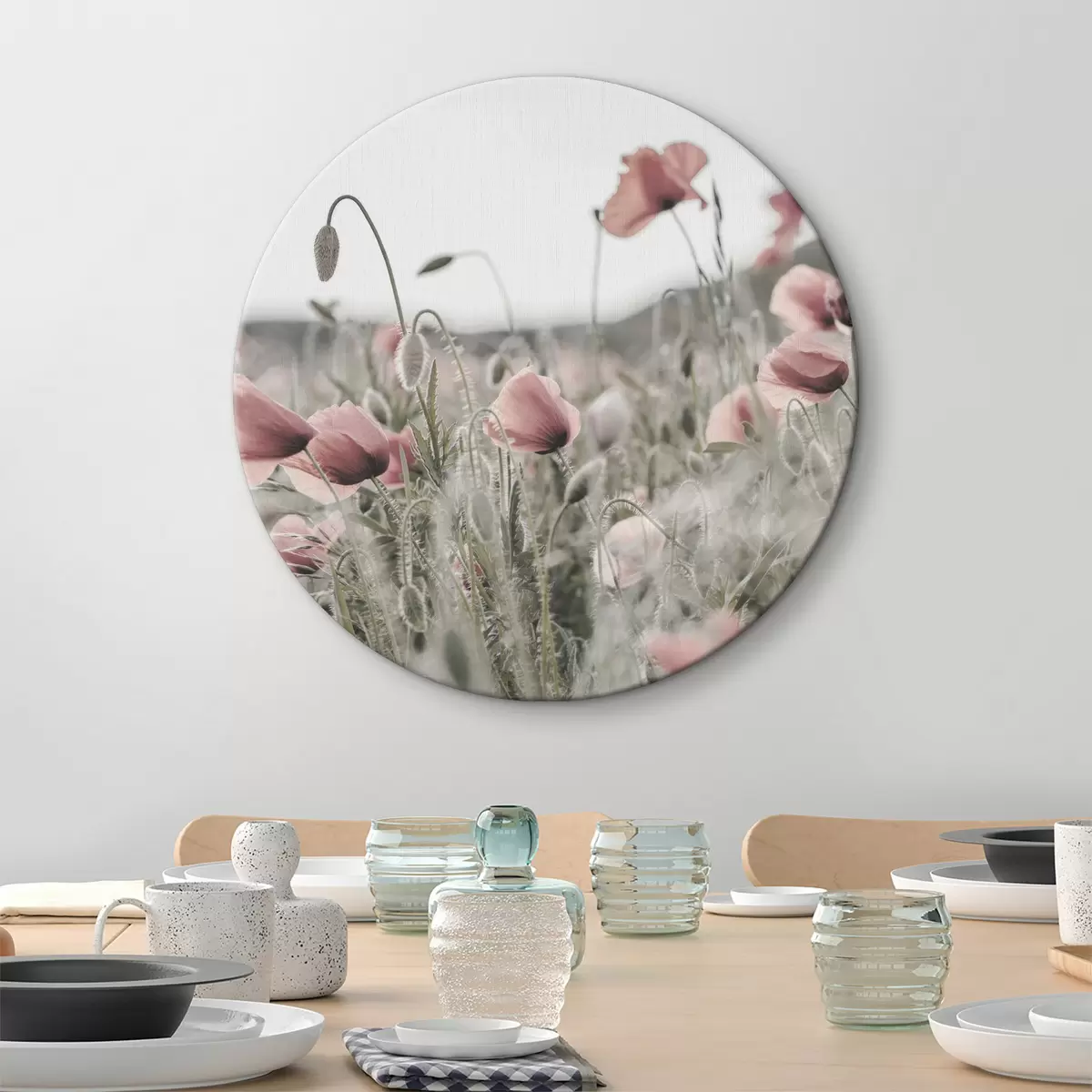 Ronde schilderijen Klaproos schilderij in gedempte kleuren r35592
