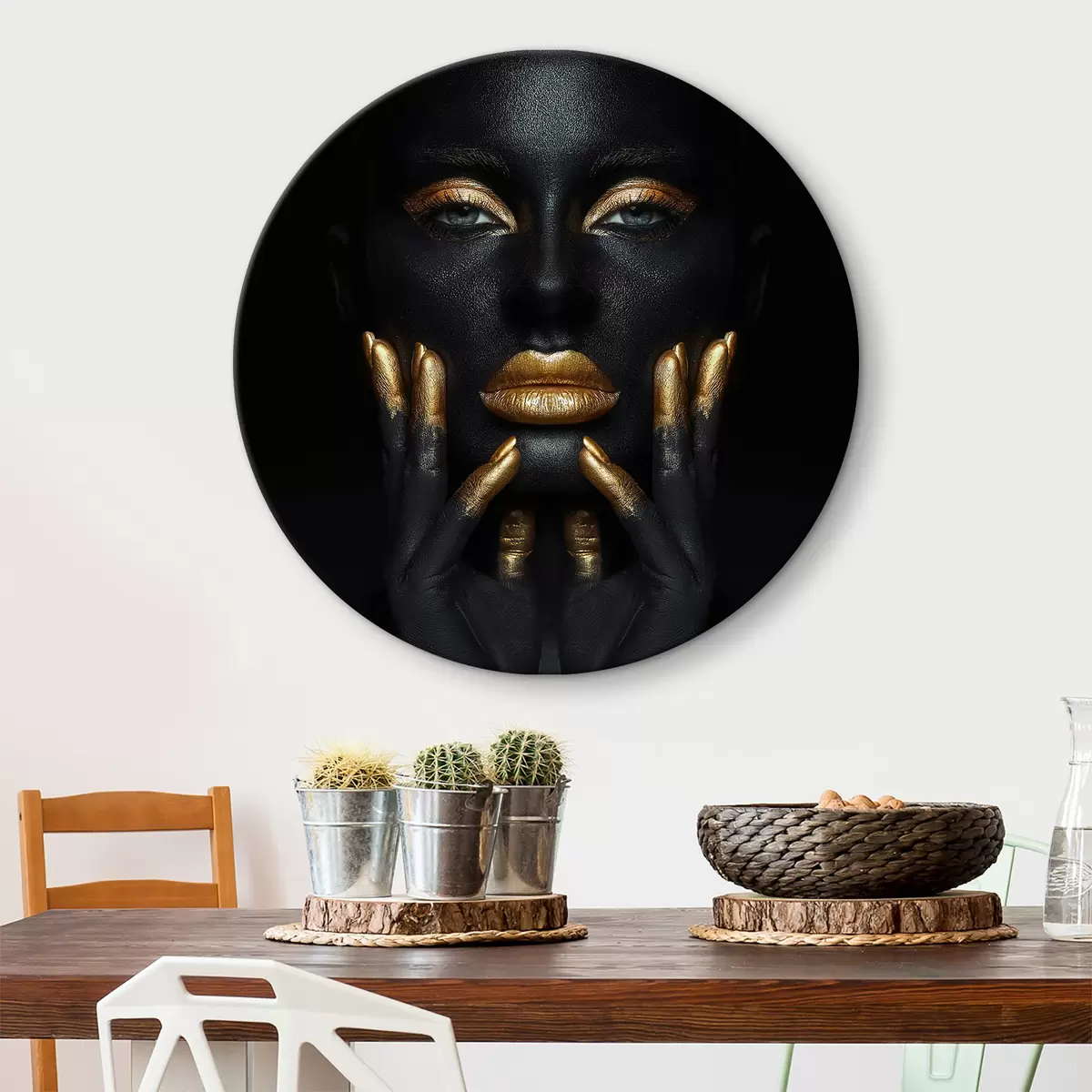 Ronde schilderijen Stijlvolle meisjesachtige abstractie met goud Nr r35622