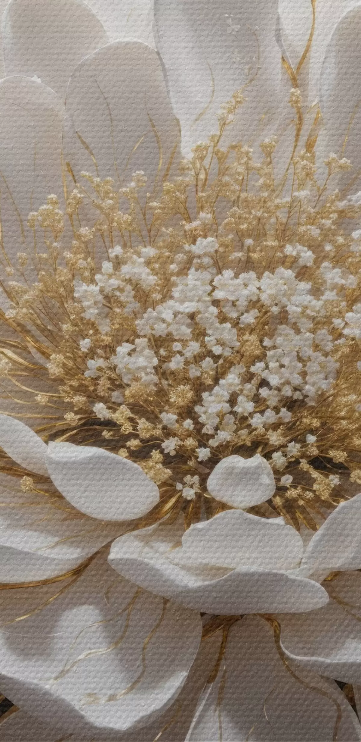 Het schilderij kan direct na ontvangst worden opgehangen. Het schilderij wordt opgespannen op een 2 cm breed houten spieraam.