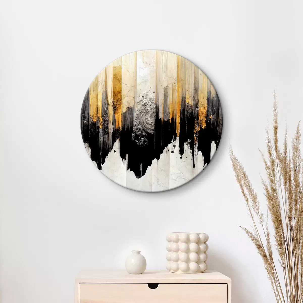 Ronde schilderijen Onscherpe afbeelding met witte, zwarte en gouden verf r35735