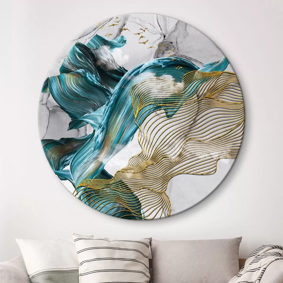 Ronde schilderijen Abstracte golven met groenblauwe en vloeiende lijnpatronen Nr r35797