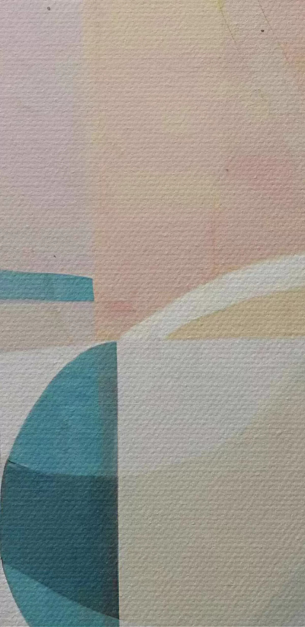 Ronde schilderijen Geometrische abstractie in beige en blauw Nr r35802