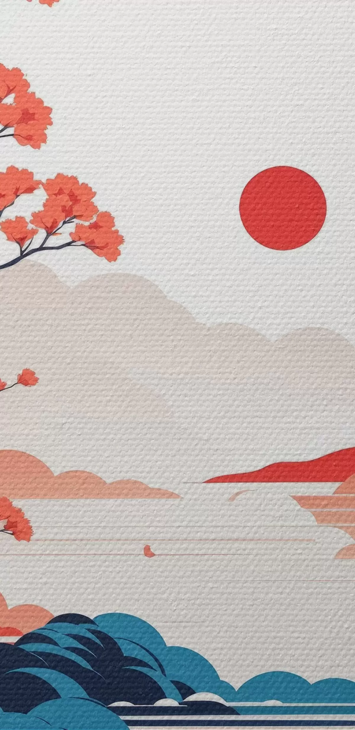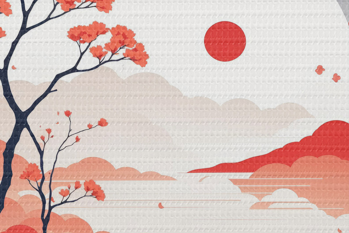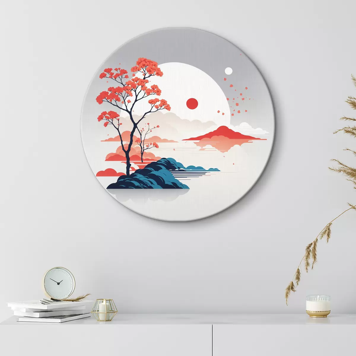 Ronde schilderijen Kersenbloesems tegen de achtergrond van zonsopgang Nr r35820