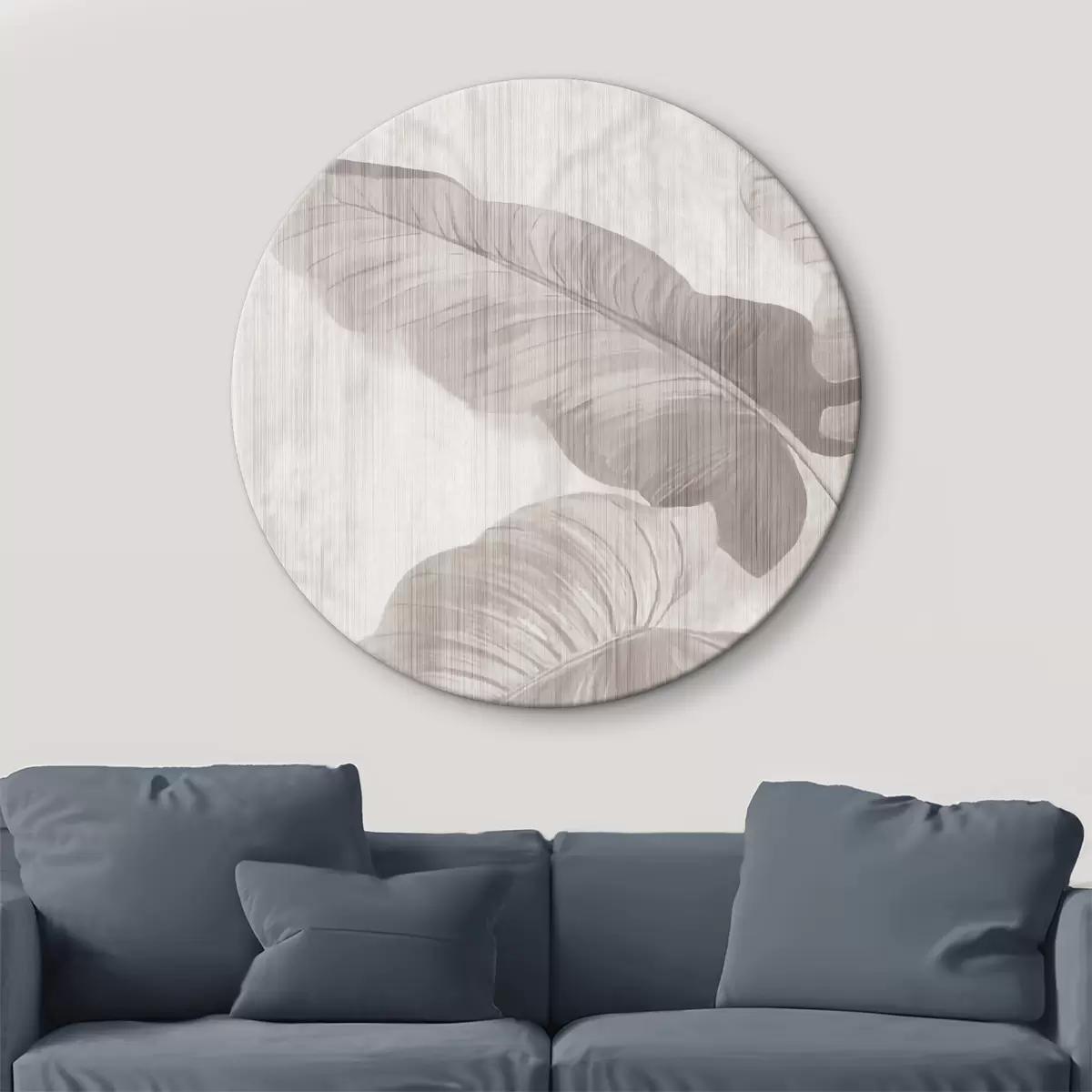Ronde schilderijen Gedempt bananenblad in zachte texturen Nr r35850