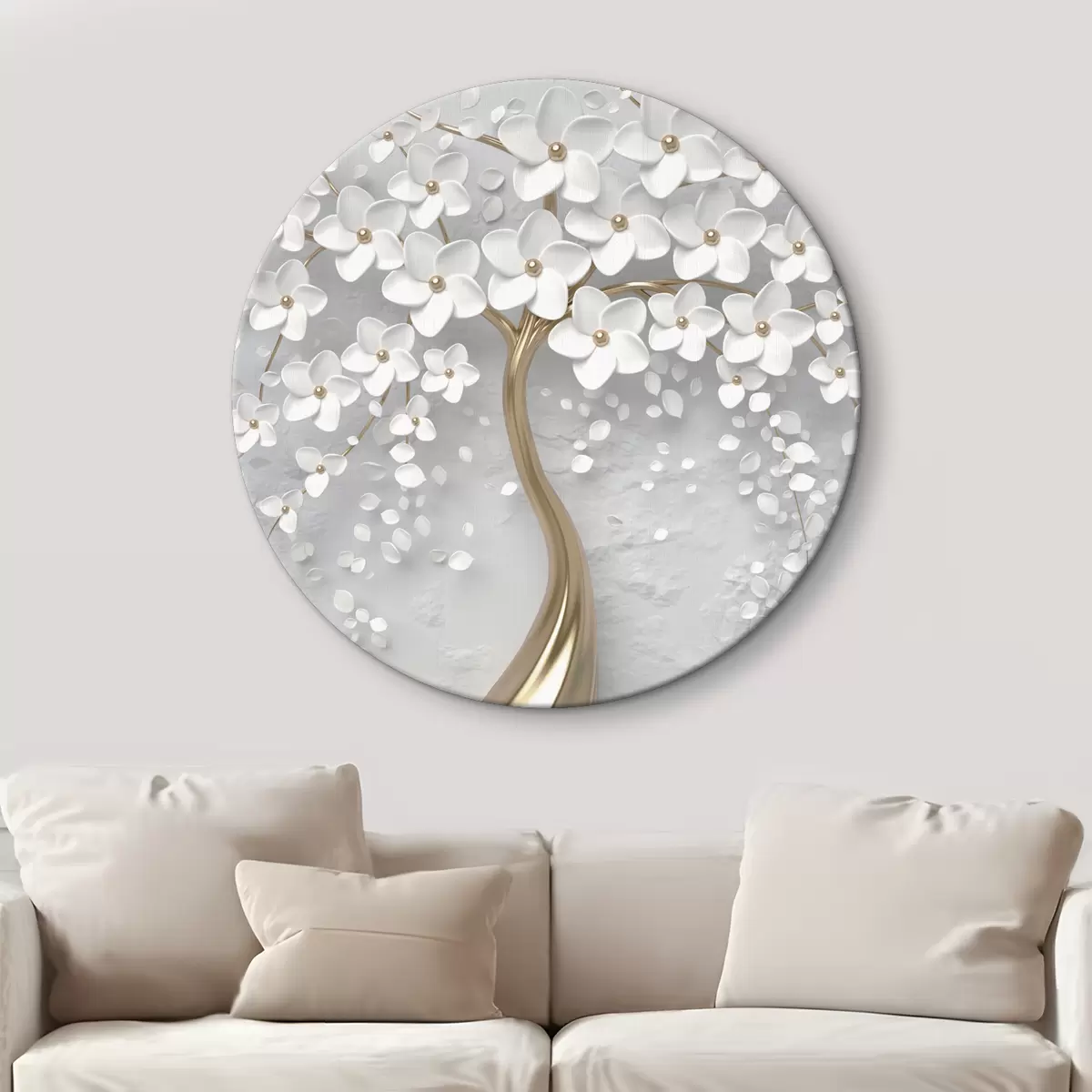 Ronde schilderijen Volumineuze boom met veel witte bloemen Nr r35856