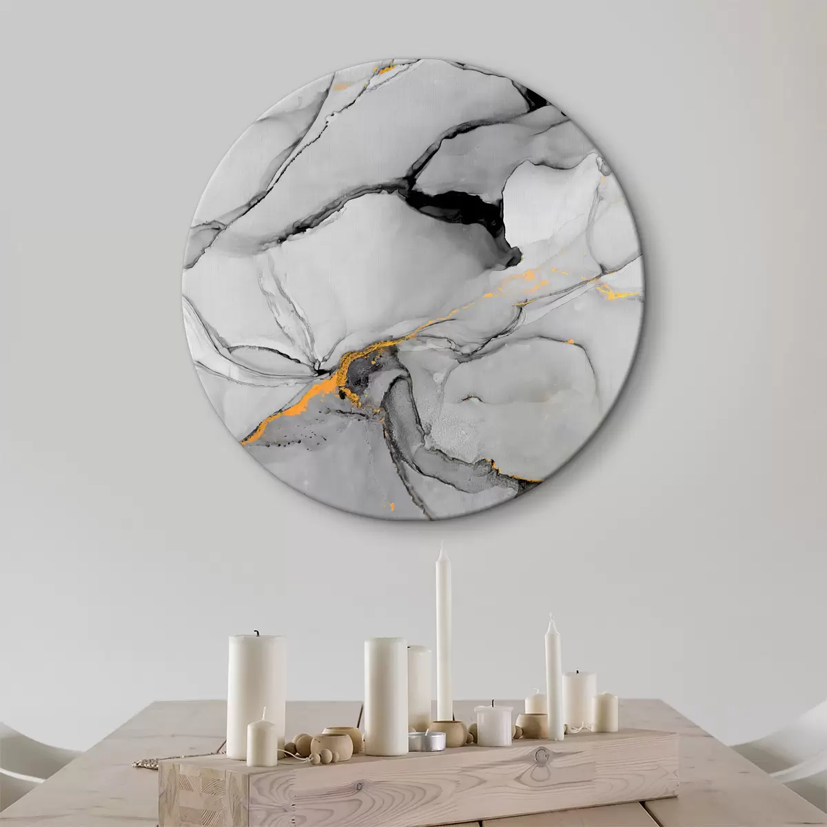 Ronde schilderijen Grijs marmer met goud Nr r35858