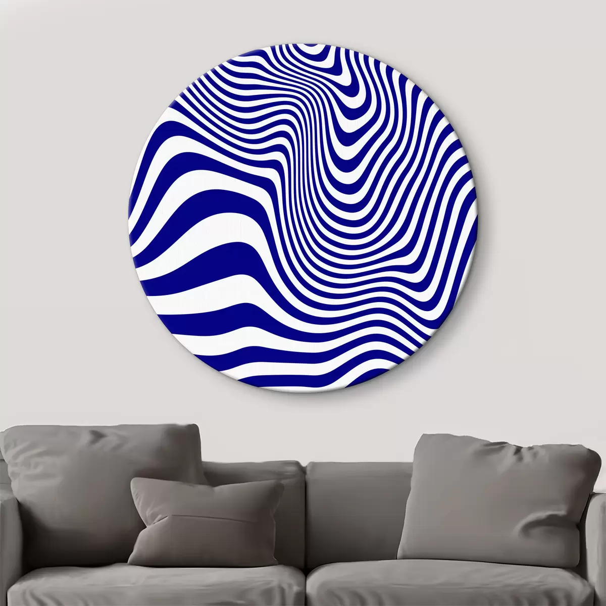 Ronde schilderijen Dynamische golven in vetblauwe patronen Nr r35871