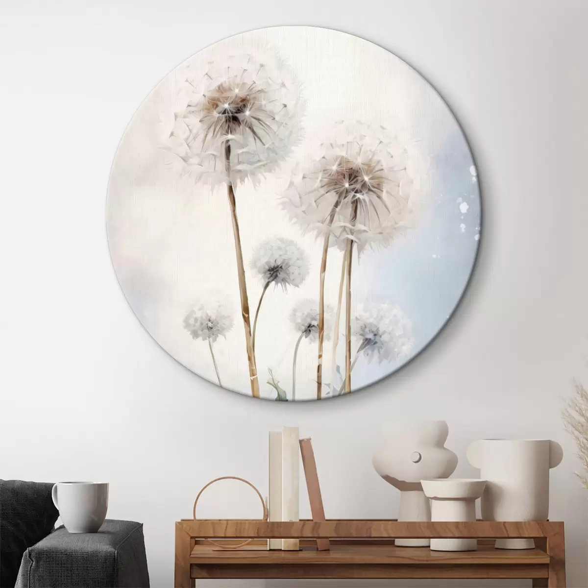 Ronde schilderijen Dandelion Dreams in zachte pasteltinten Nr r35907