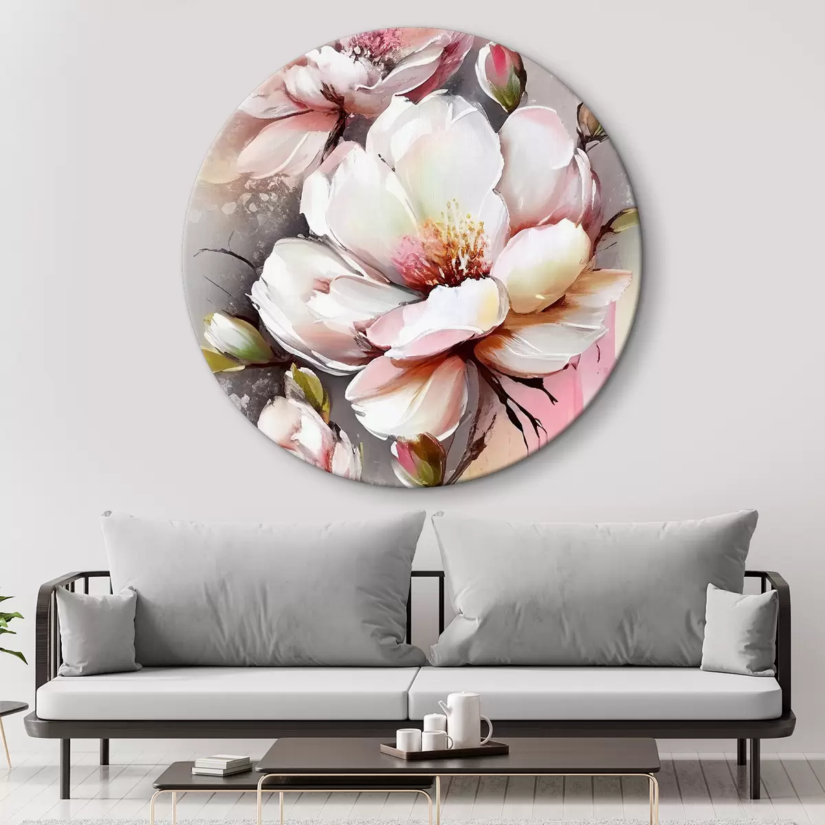 Ronde schilderijen Bloeiende genade: Zachte bloemblaadjes en zachte tinten r35925