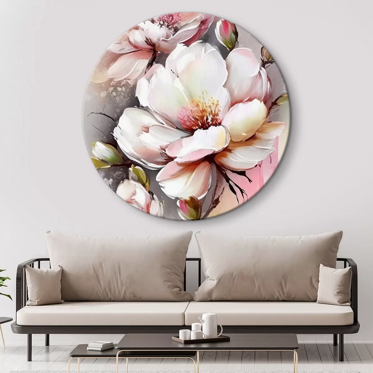 Ronde schilderijen Bloeiende genade: Zachte bloemblaadjes en zachte tinten Nr r35925