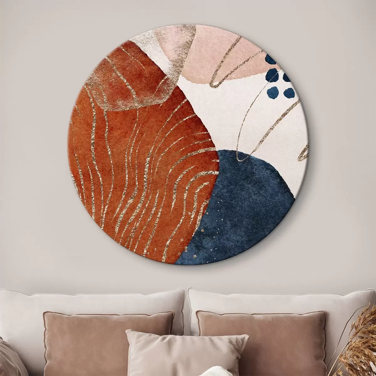 Ronde schilderijen Kosmische lagen: Diepblauw en aardse accenten r35956