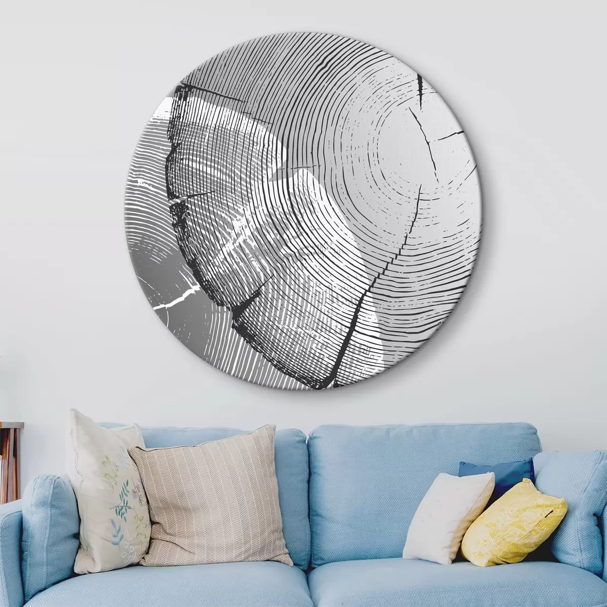 Ronde schilderijen Zwart-witte cirkels gesneden uit hout r35994