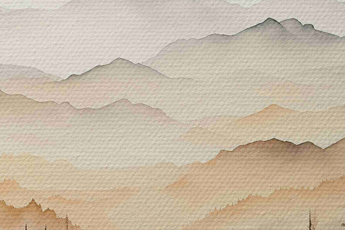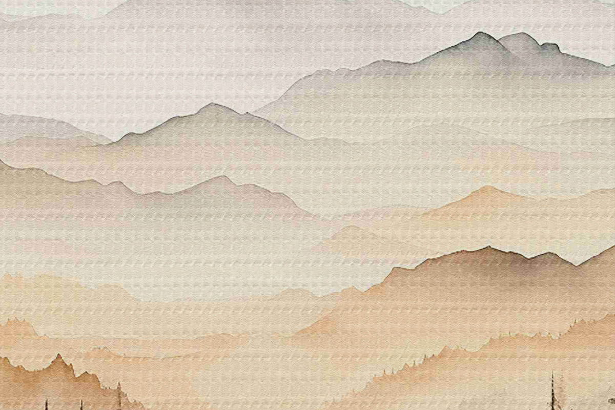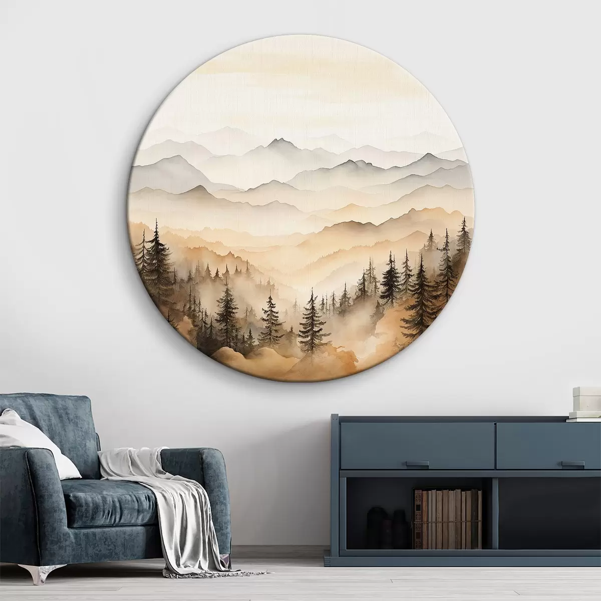 Ronde schilderijen Verschillende aquarelbergen in beige tinten Nr r36015