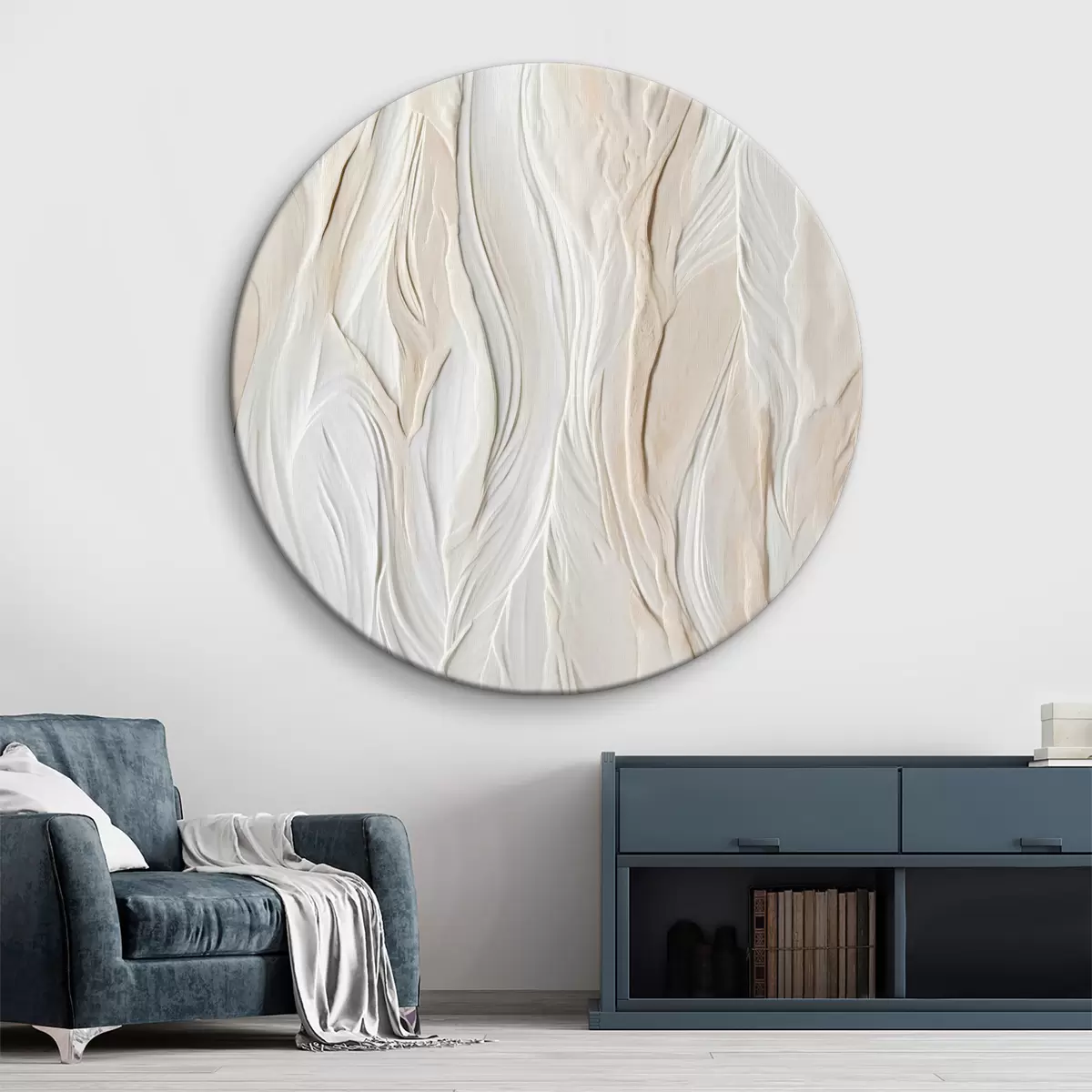 Ronde schilderijen Neutrale tinten in gebeeldhouwde lagen r36027