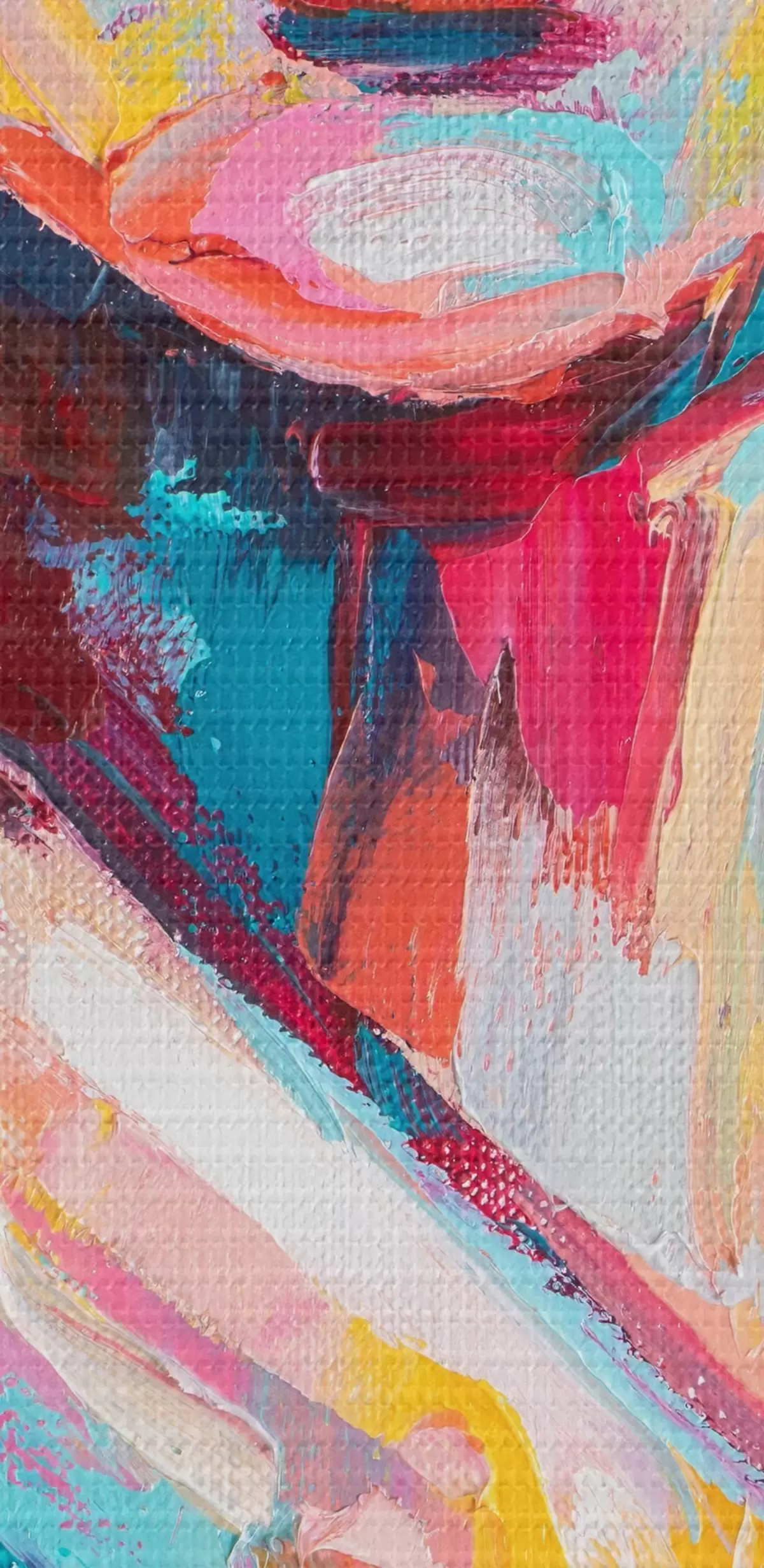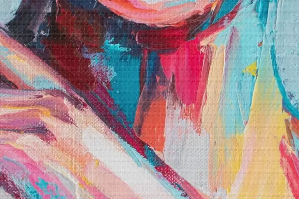 De fijne weving van draden op dit doek lijkt op het oppervlak van professionele schildersdoeken.